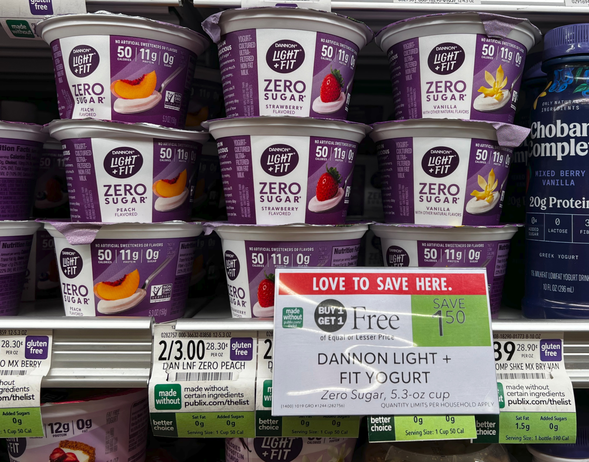 Dannon Light + Fit Zero Sugar Yogurt, or Greek, BOGO $1.50