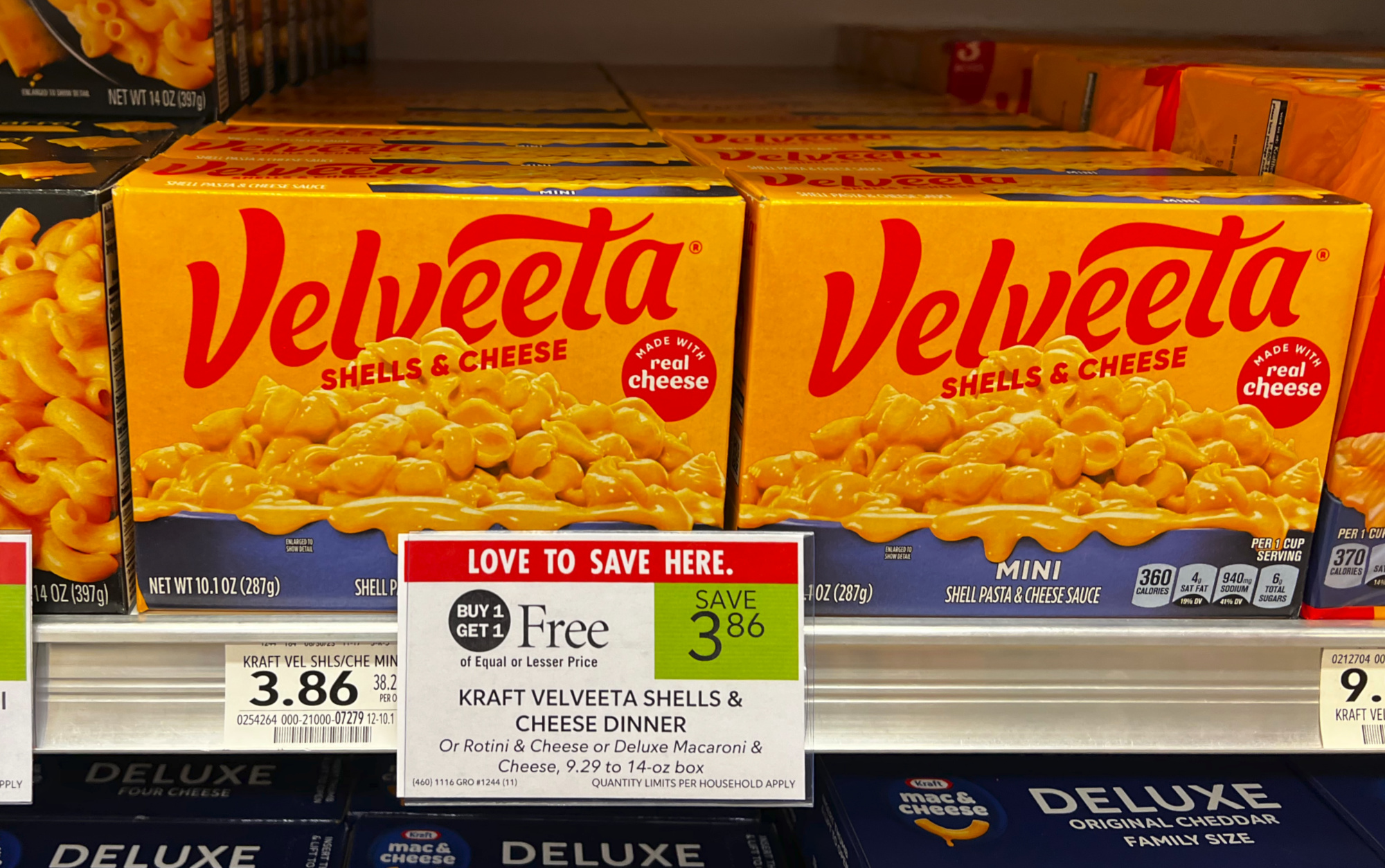 Velveeta Shells & Cheese Dinner, or Velveeta Rotini & Cheese, 9.29 to 14 oz, BOGO $3.86