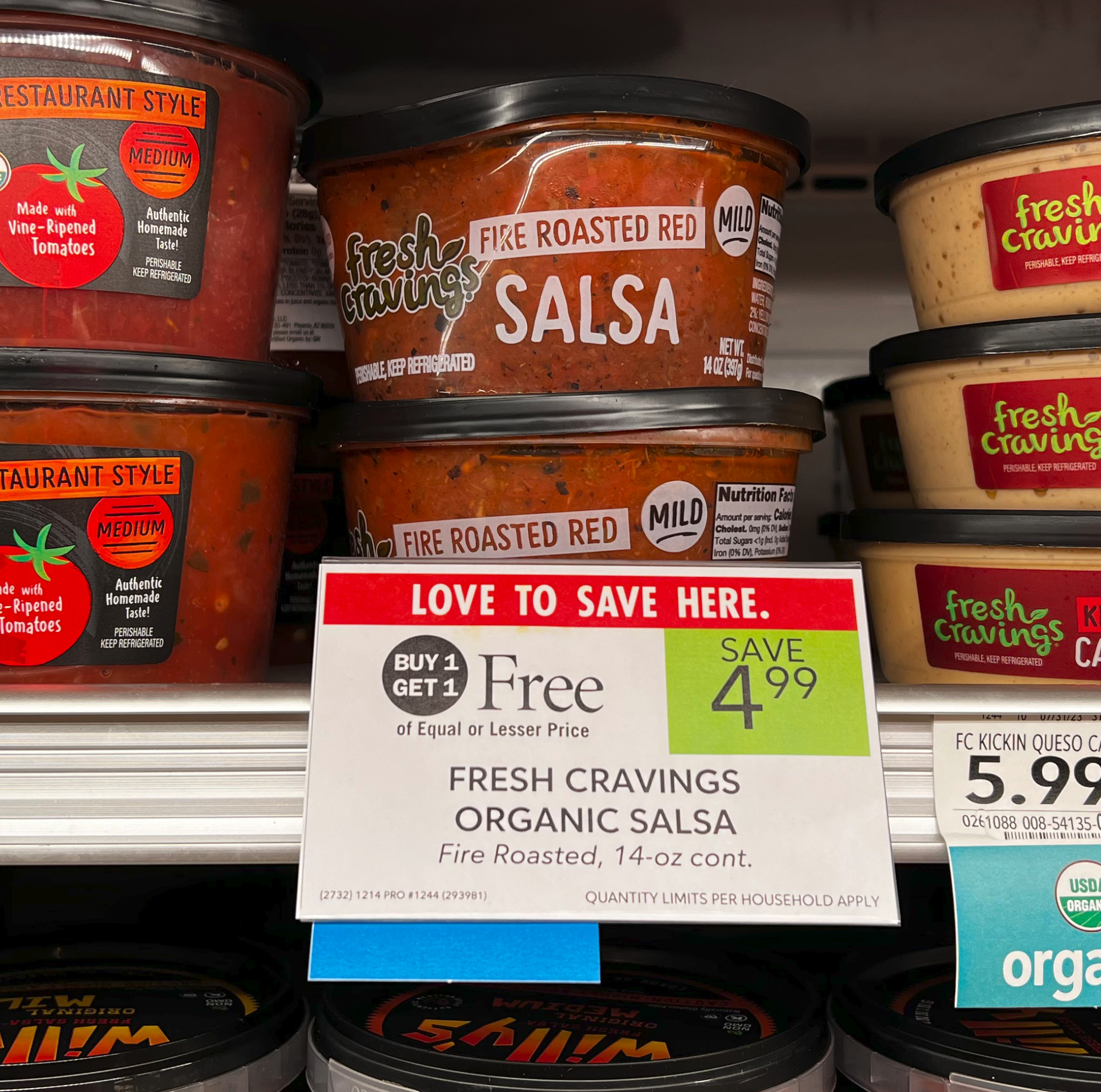 Head over to Publix for nice deal on Fresh Cravings Organic Salsa. Combine the BOGO sale and coupon to pick the containers up for just $1.50 each!