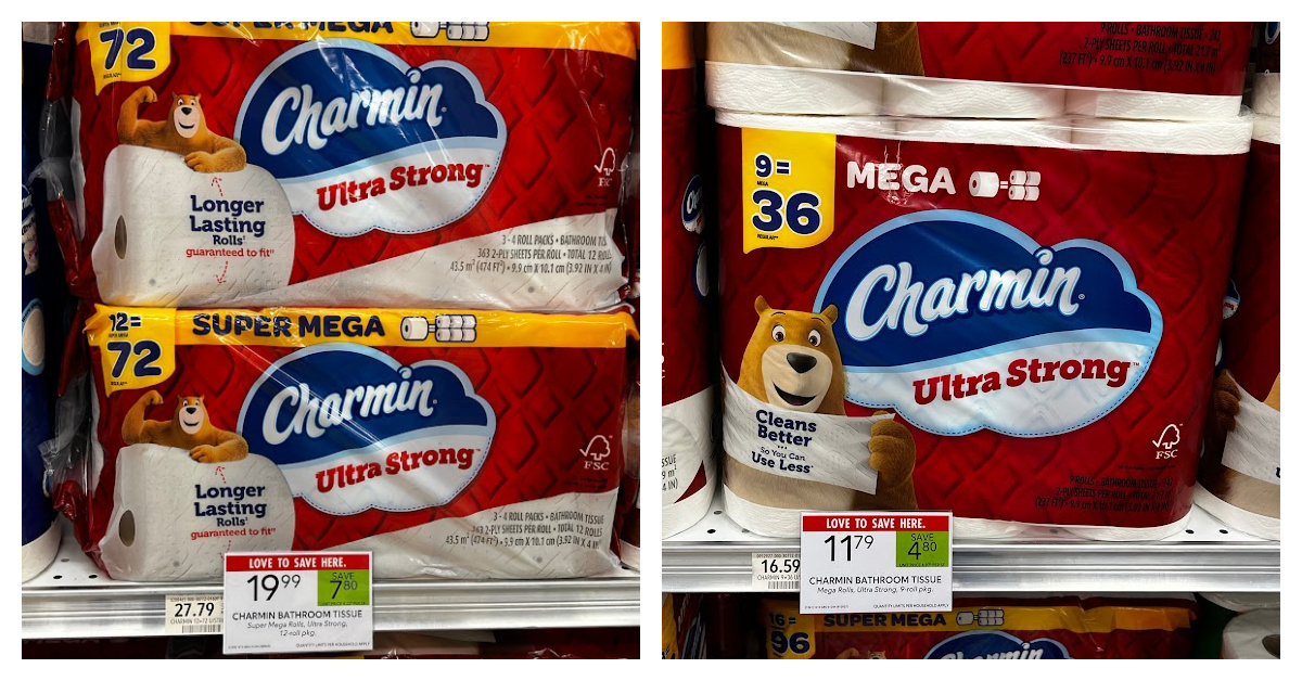 Charmin Bathroom Tissue, Super Mega Rolls, 6-roll, or Mega Rolls, 9-roll, $11.79