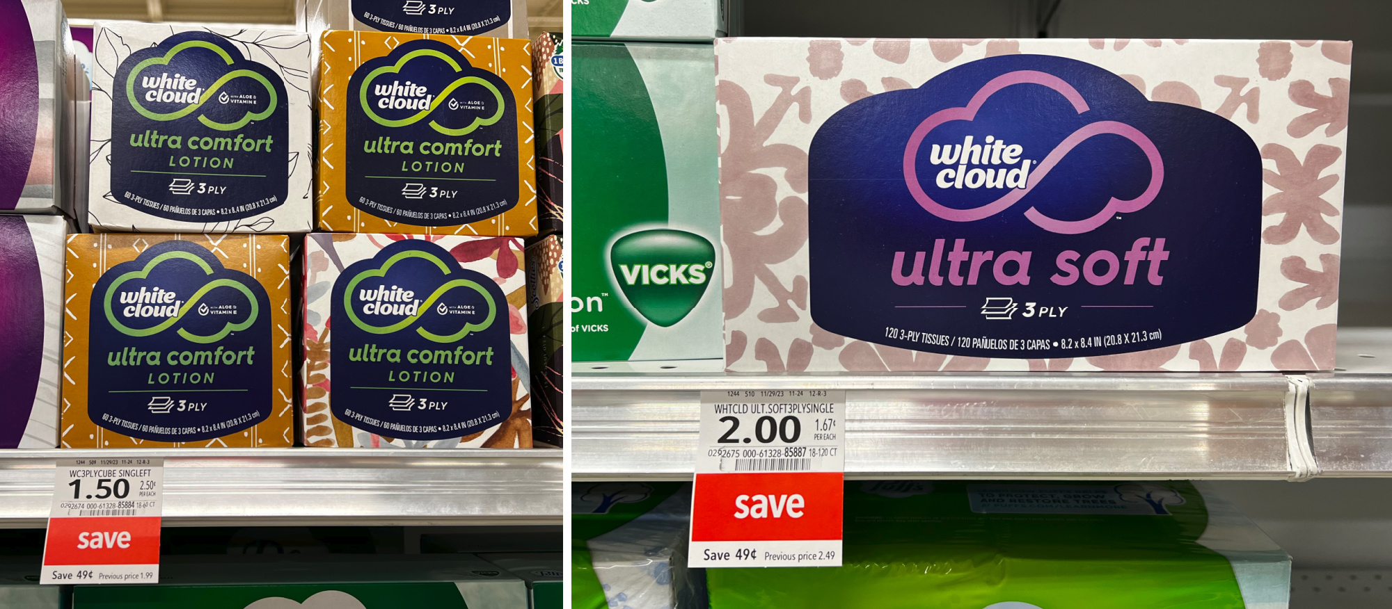 White Cloud® 3 Ply Facial Tissue, 60 or 120 ct, $1.50 – $2