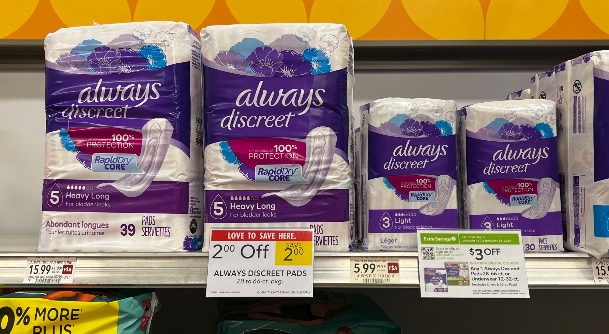 –$3/1 Always DISCREET Incontinence Products (excludes 24ct to 48ct Always Discreet Liners, 20ct and 30ct Pads and other Always Products and trial/travel size) (Publix Digital Coupon)