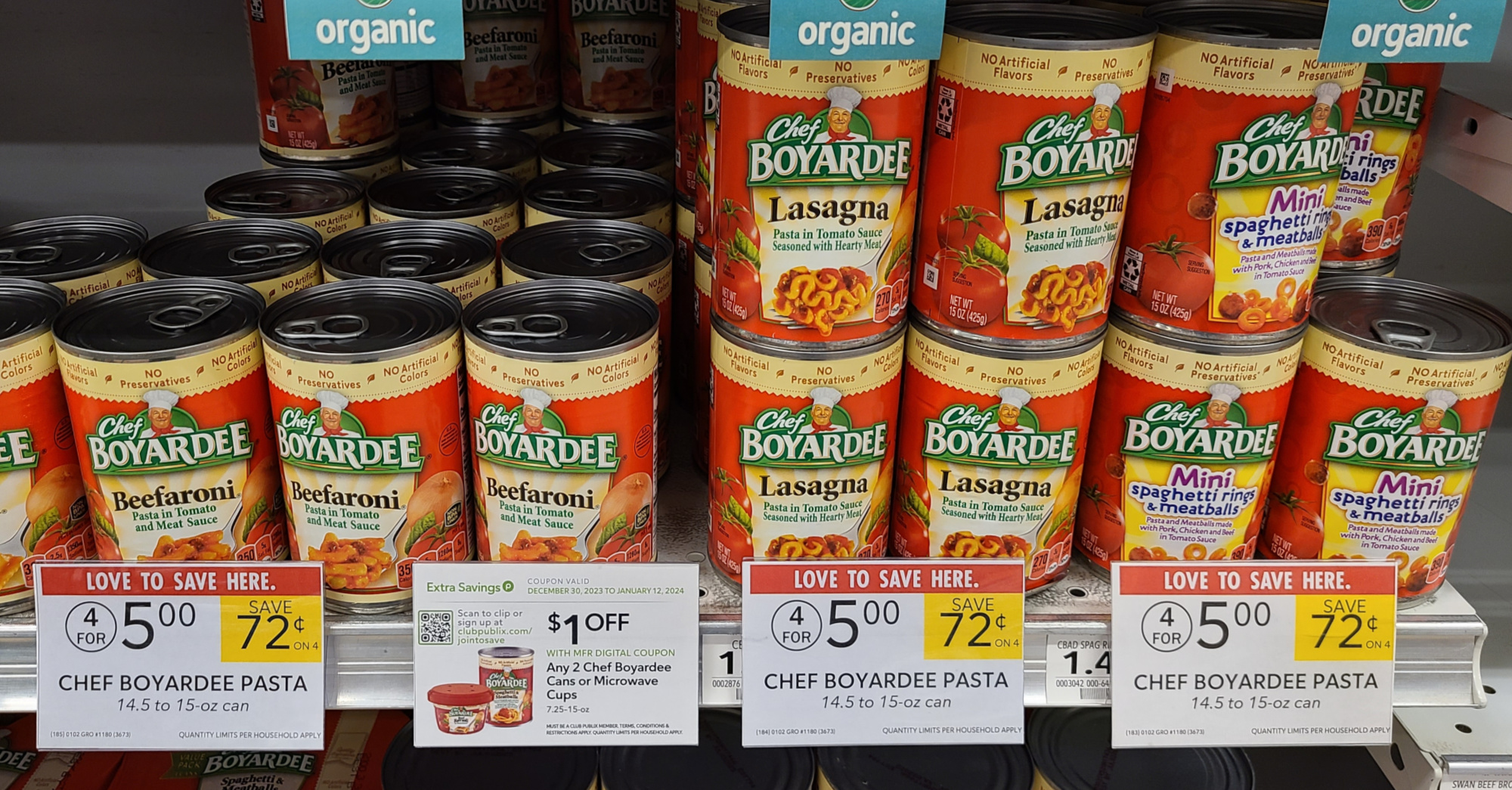 Grab a couple of cans of Chef Boyardee Pasta on the cheap this week at Publix. Load the digital coupon and use it with the sale to get a couple of cans for just 75¢ each.