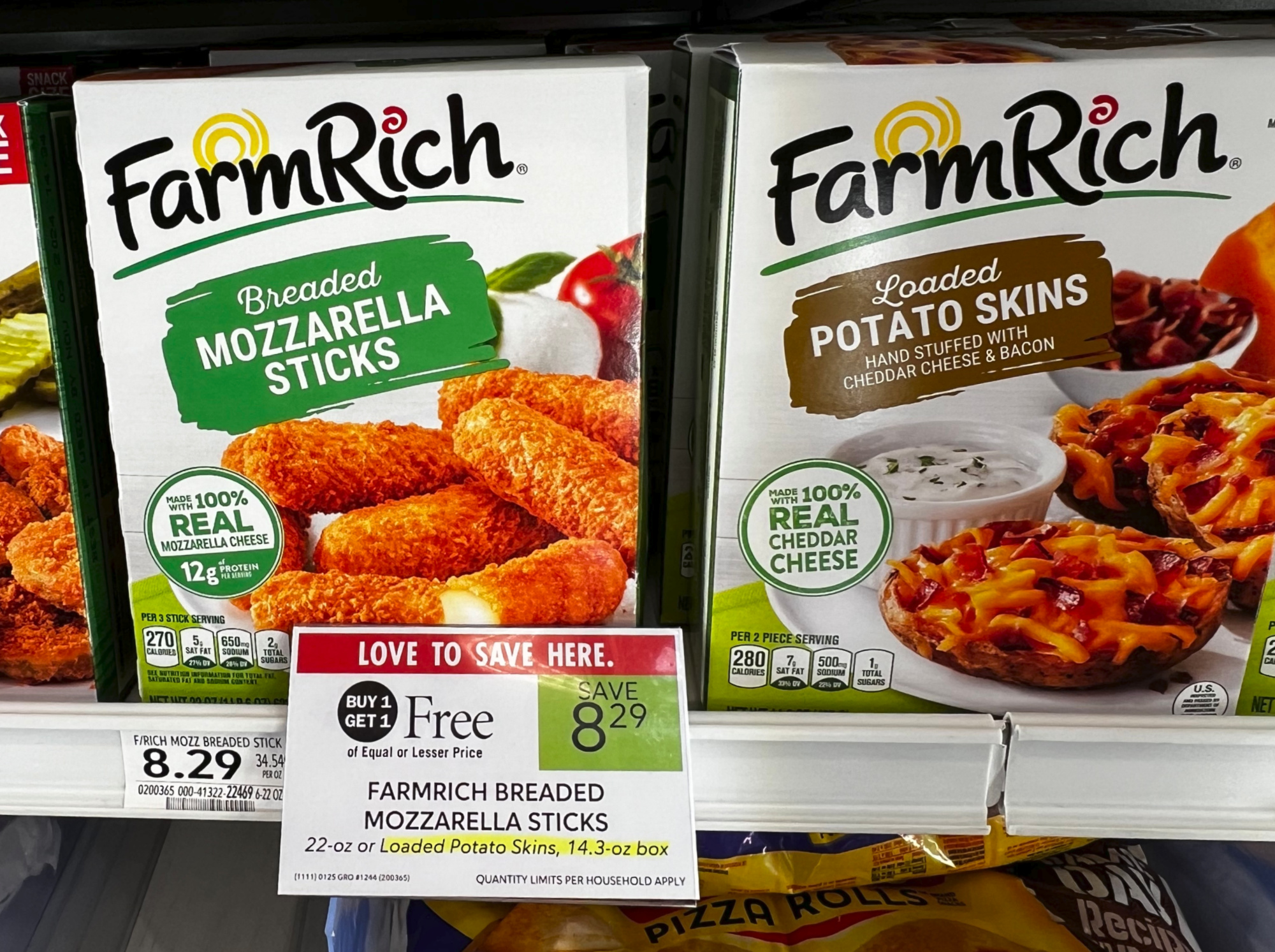 FarmRich Mozzarella, 24 oz, or Loaded Potato Skins, 16 oz, BOGO $8.29