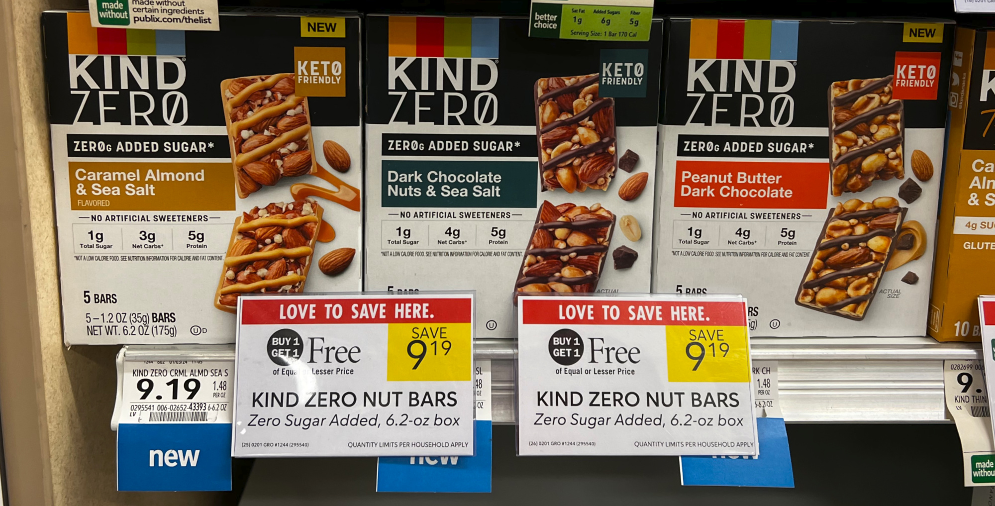 Head to Publix for a nice discount on KIND Zero Nut Bars. After BOGO sale and cash back offer, you can get the boxes for just $2.60 the next time you shop!