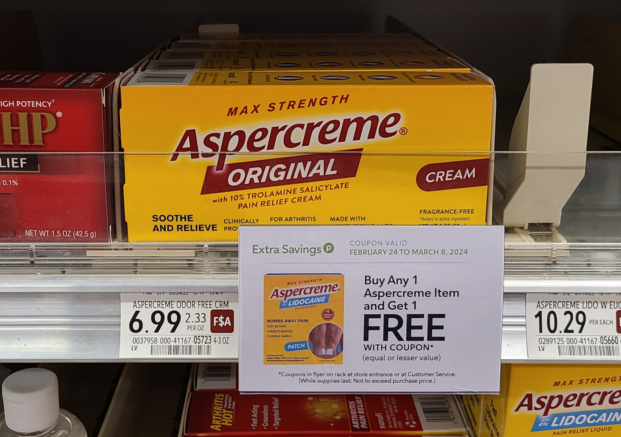-$2/1 Aspercreme Product (excl 1.25 oz Cream, 1ct Patch, ets), 2/25 SS (exp 3/10/24)