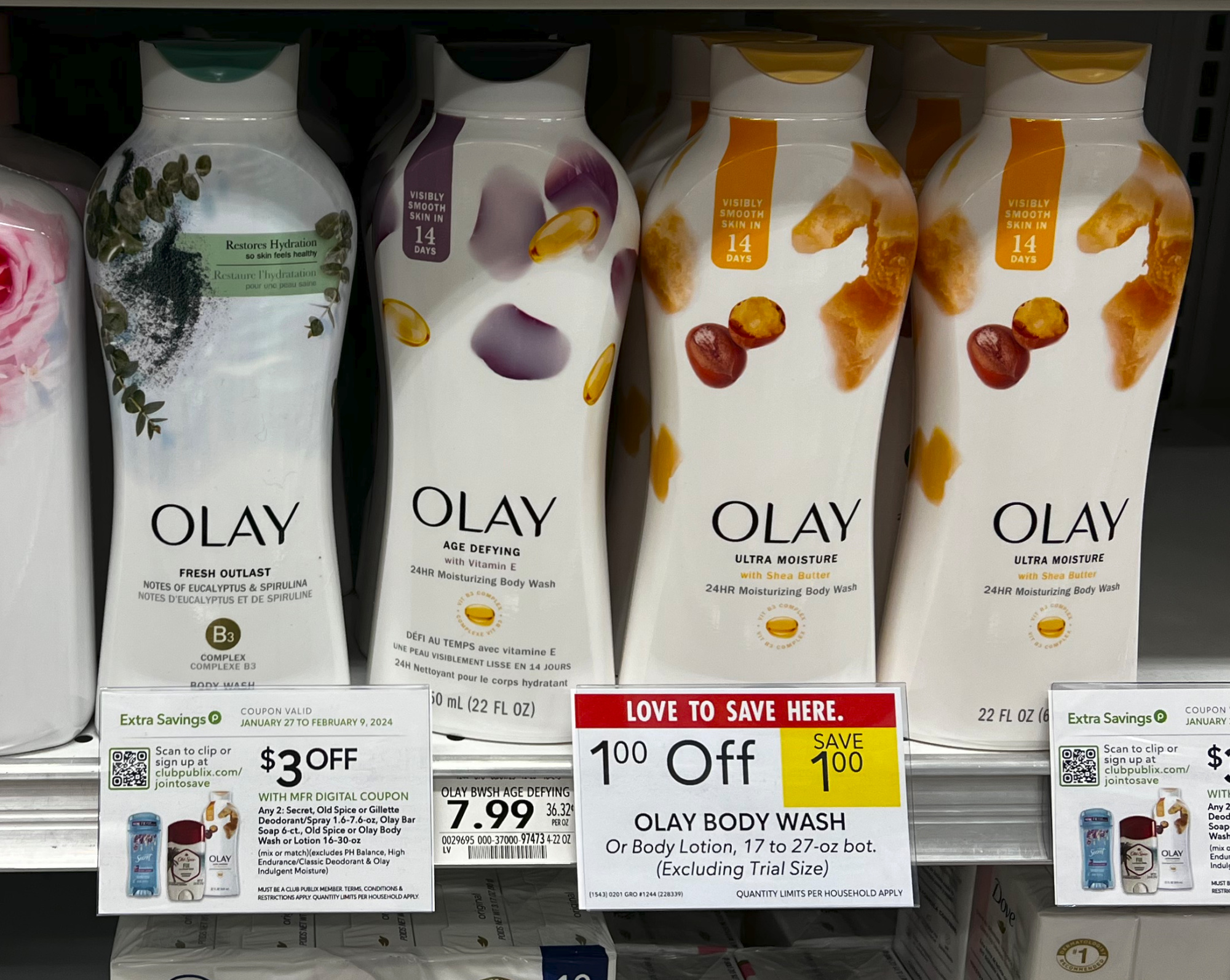 –$3/2 Secret, Old Spice or Gillette Deodorants or Sprays 1.6-7.6 oz AND/OR Olay or Old Spice Body Wash or Lotion 16-30 oz or Bar Soap 6 ct (excludes pH Balance, High Endurance/Classic Deodorants, Olay Indulgent Moisture and trial/travel size) (Publix Digital Coupon)