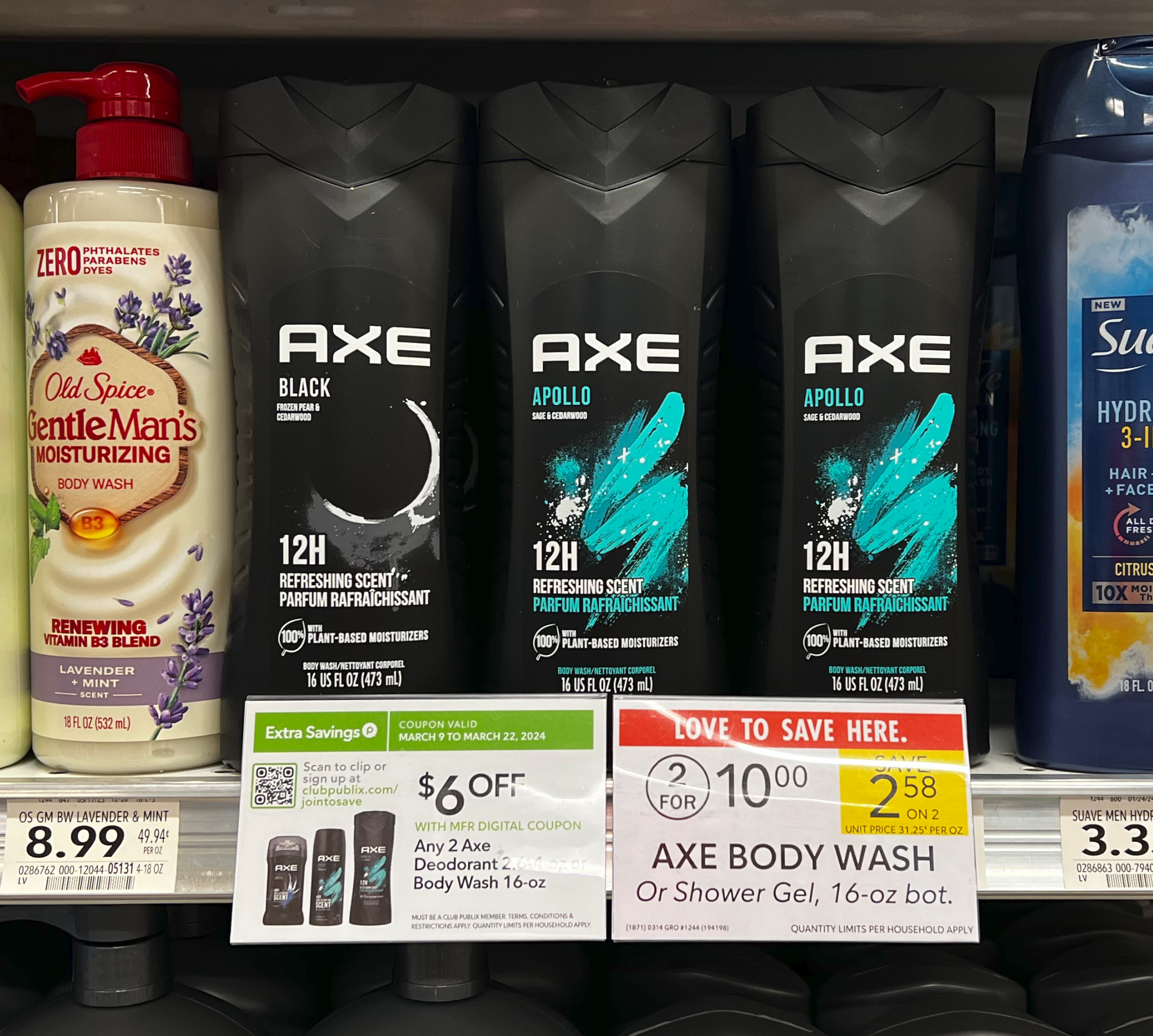 –$6/2 AXE Deodorant Sprays, Sticks or Body Wash products (excludes trial and travel sizes) (Publix Digital Coupon)