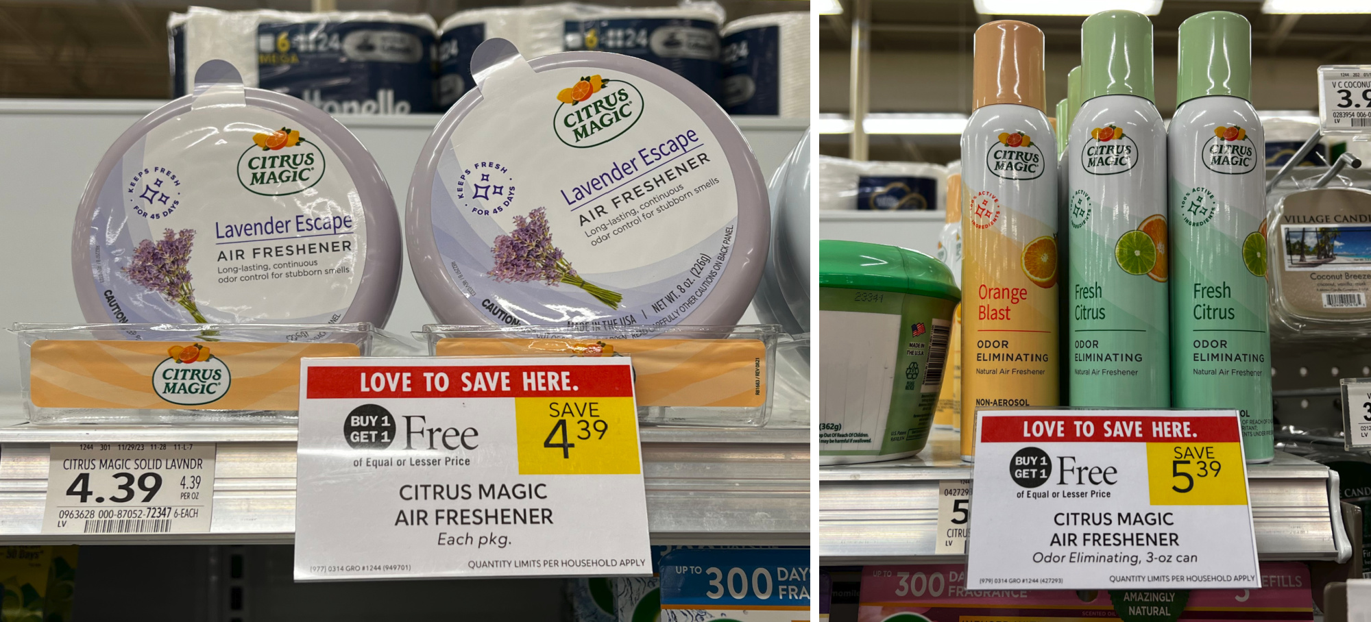 Head over to Publix for a deal on Citrus Magic products. Combine the BOGO sale and cash back offer to pay as little as $1.70 per item.