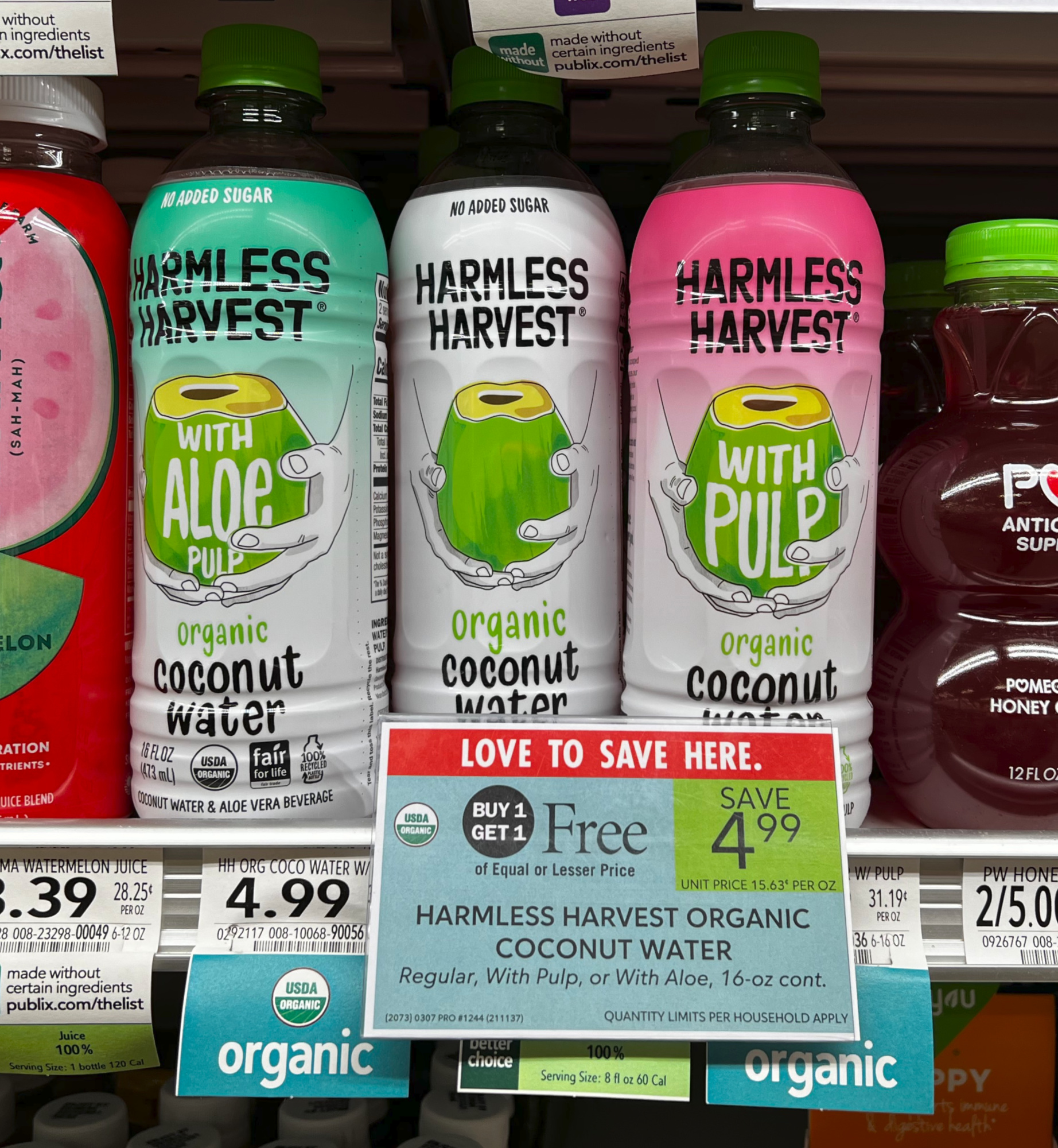 Have you been wanting to try Harmless Harvest Coconut Water? Now is a good time to check it out as you can get the bottles for only $1.75 each with the BOGO sale and cash back combo.