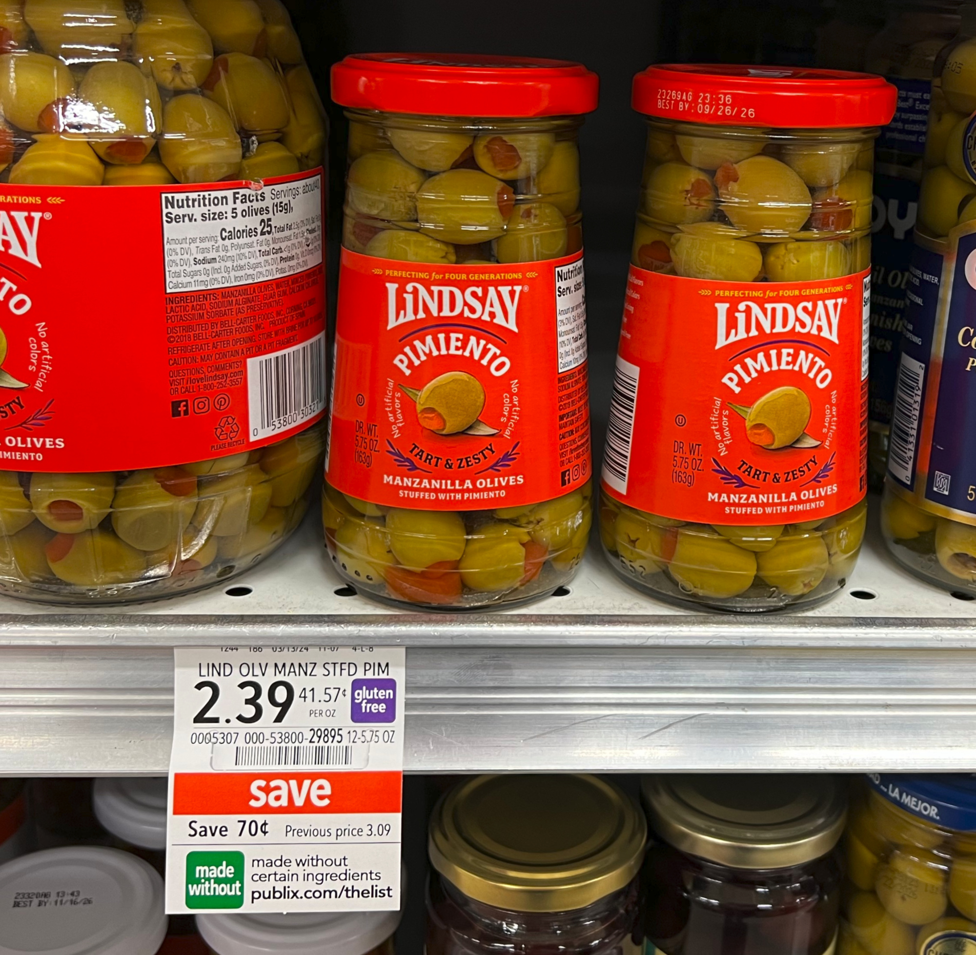 Lindsay Manzanilla Olives, 5.75 oz, $2.39 (reg $3.09)