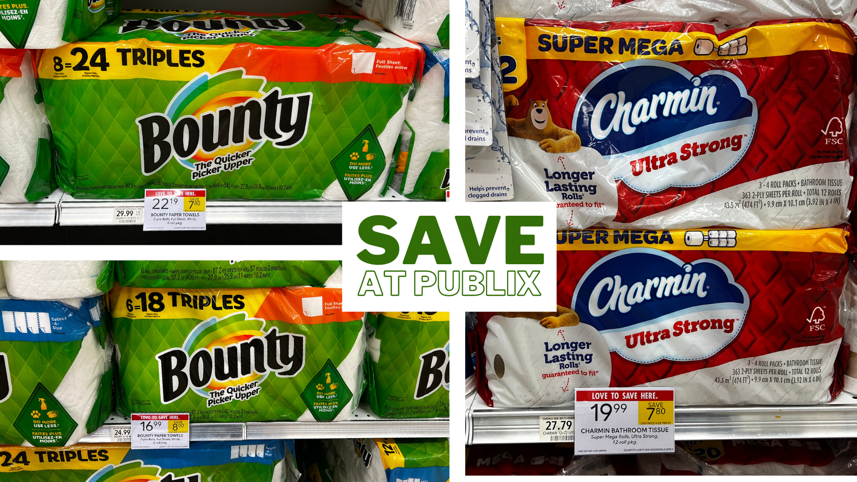 –$8/2 Charmin AND/OR Bounty Products (Priced $16.99 or above) Publix Digital Coupon