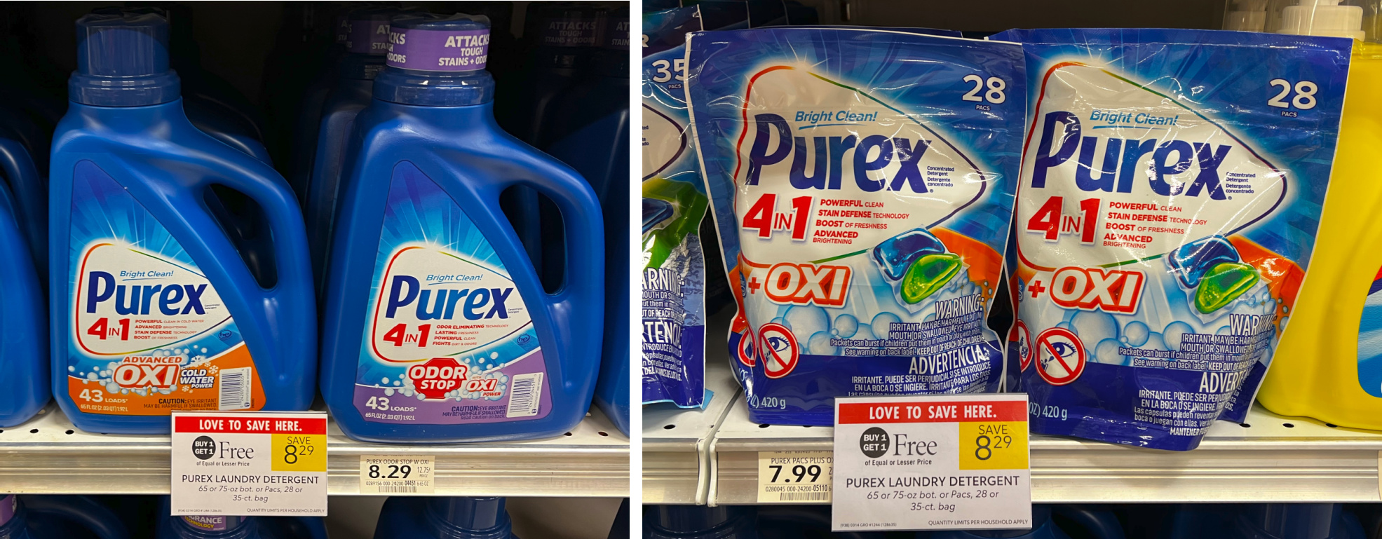 Purex Laundry Detergent, 65 or 75 oz bot, or Pacs, 28 or 35 ct, BOGO $8.29