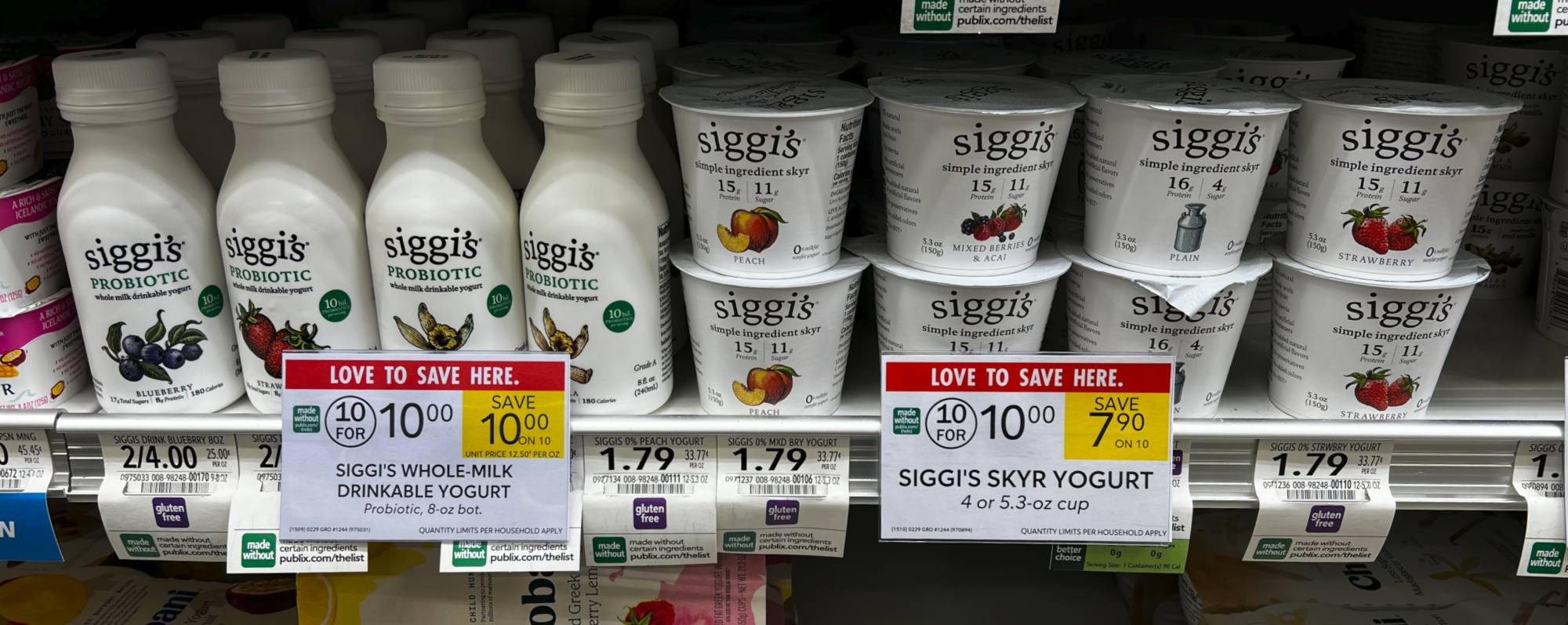 Look for a super deal on Siggi’s Yogurt this week at Publix. With the sale and coupon combo you pay just 50¢ per cup.