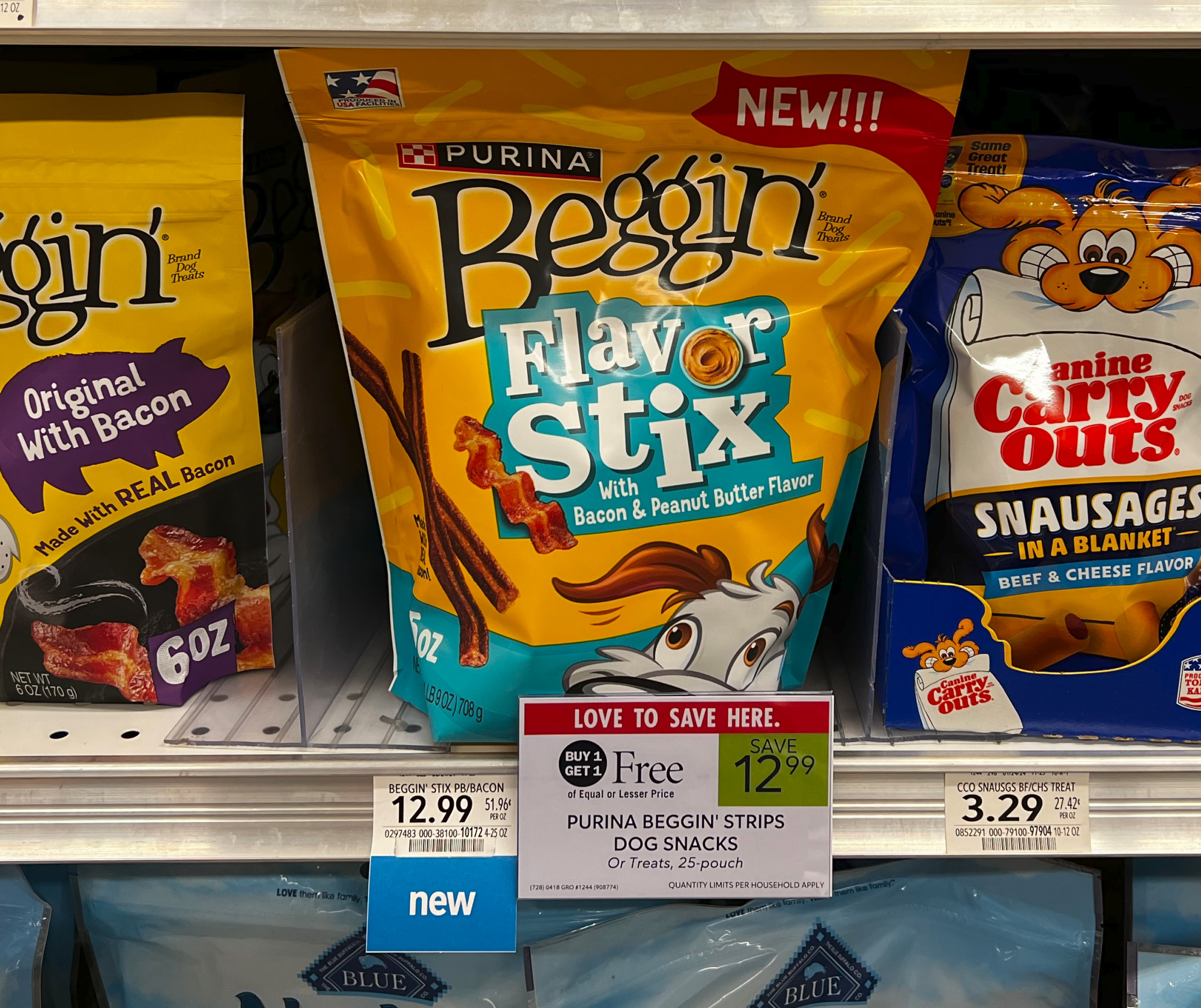 Pick up a deal on Beggin’ Flavor Stixs Dog Treats at Publix. Combine the BOGO sale and coupon to pay as little as $5.50 per bag!