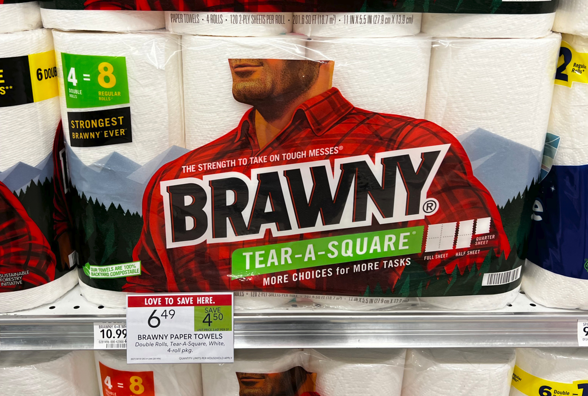 –$1/1 package of Brawny Paper Towels 4 roll or larger (Publix Digital Coupon)