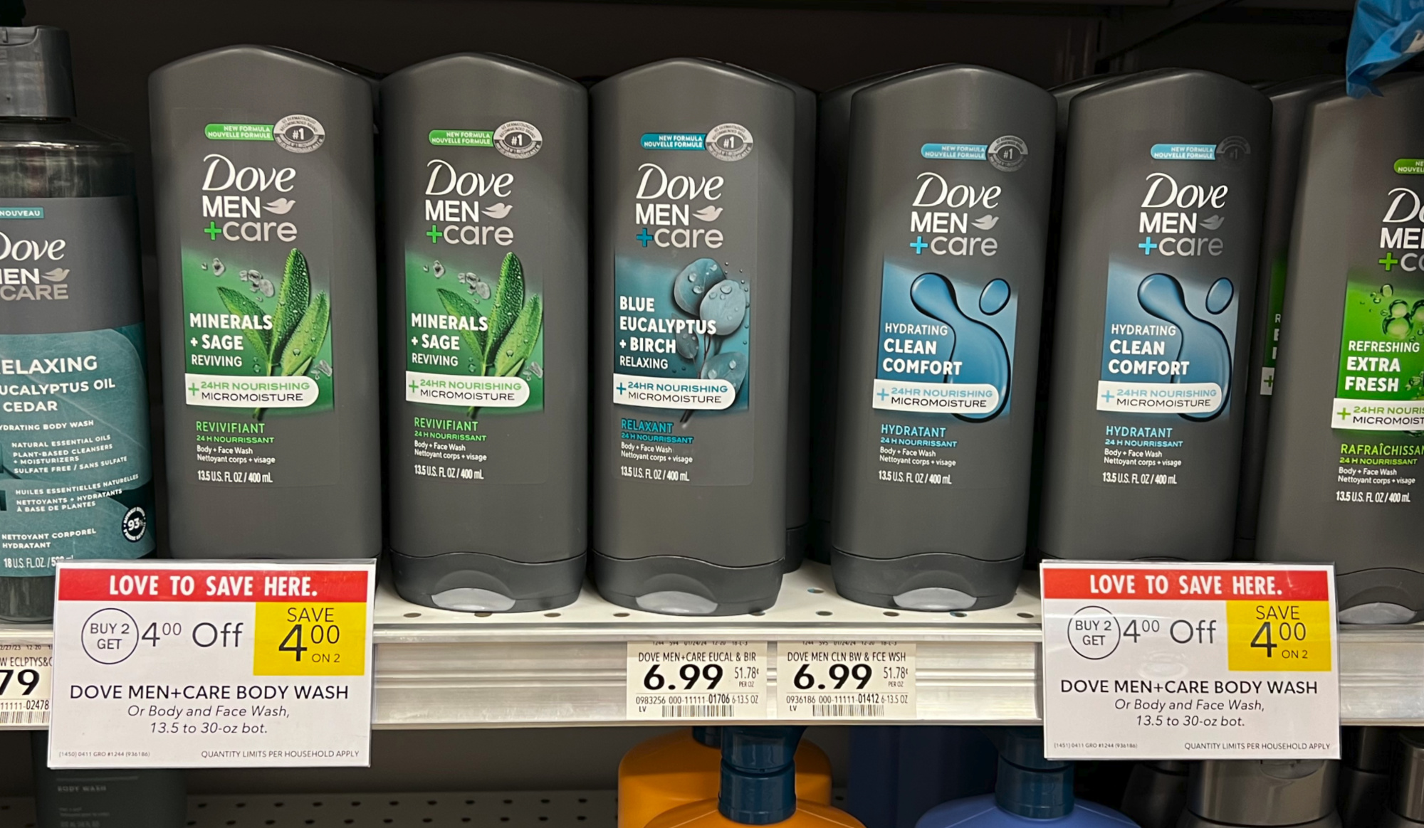 –$4/2 Dove or Dove Men+Care Body Wash 13.5oz+ OR Cleansing Bars (6-ct+ and select 1ct varieties; excludes trial/travel sizes) (Publix Digital Coupon)
