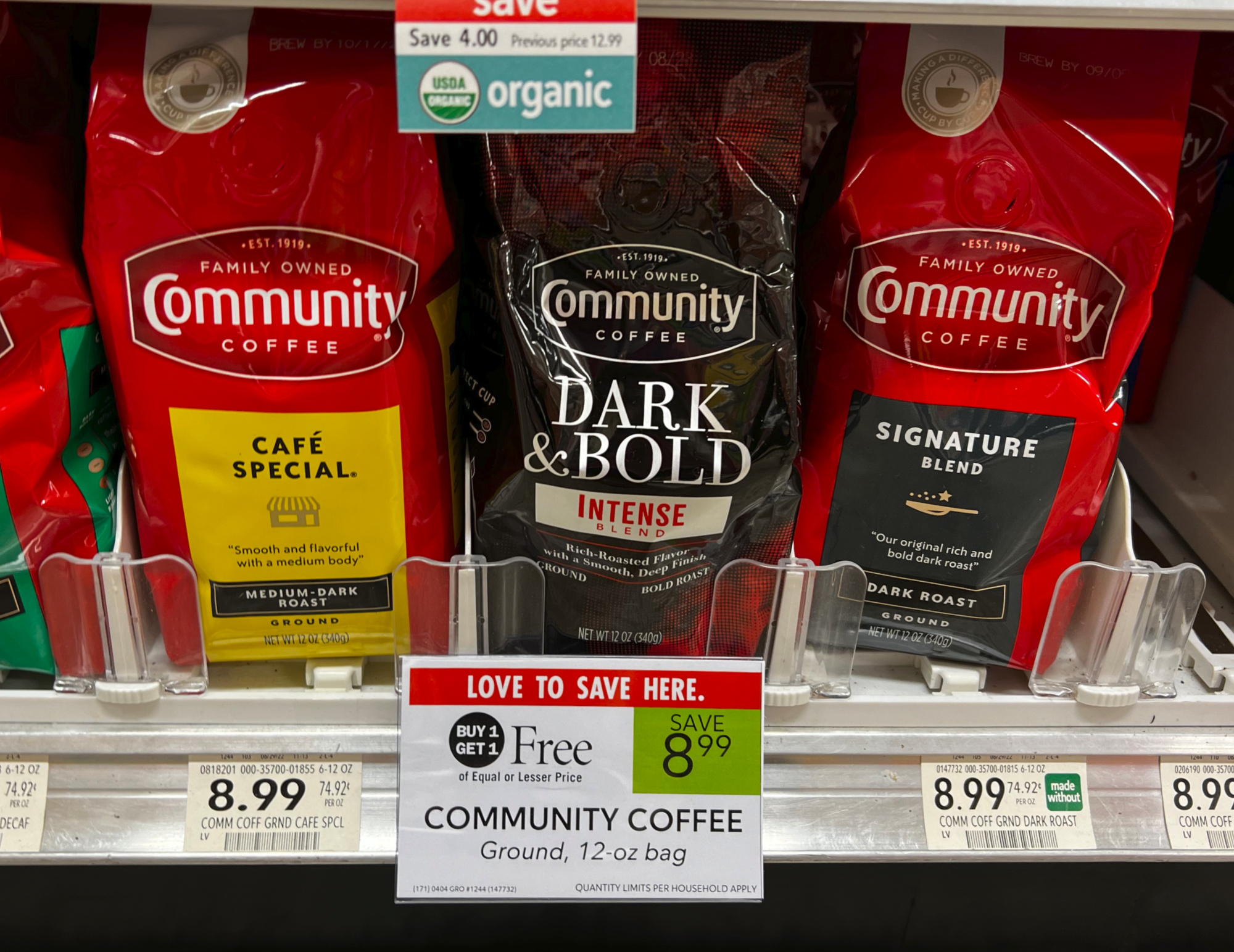 This week Community Coffee is on sale. Add in the digital coupon for even more savings. Grab the bags of Dark & Bold Ground Coffee for as little as $3.50 the next time you shop.