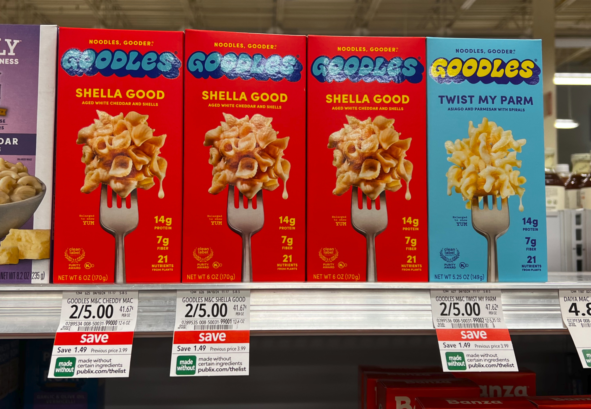 Head over to Publix for a discount on Goodles Mac & Cheese. Pair the sale and cash back offer to get the boxes for just $2 each the next time you shop!