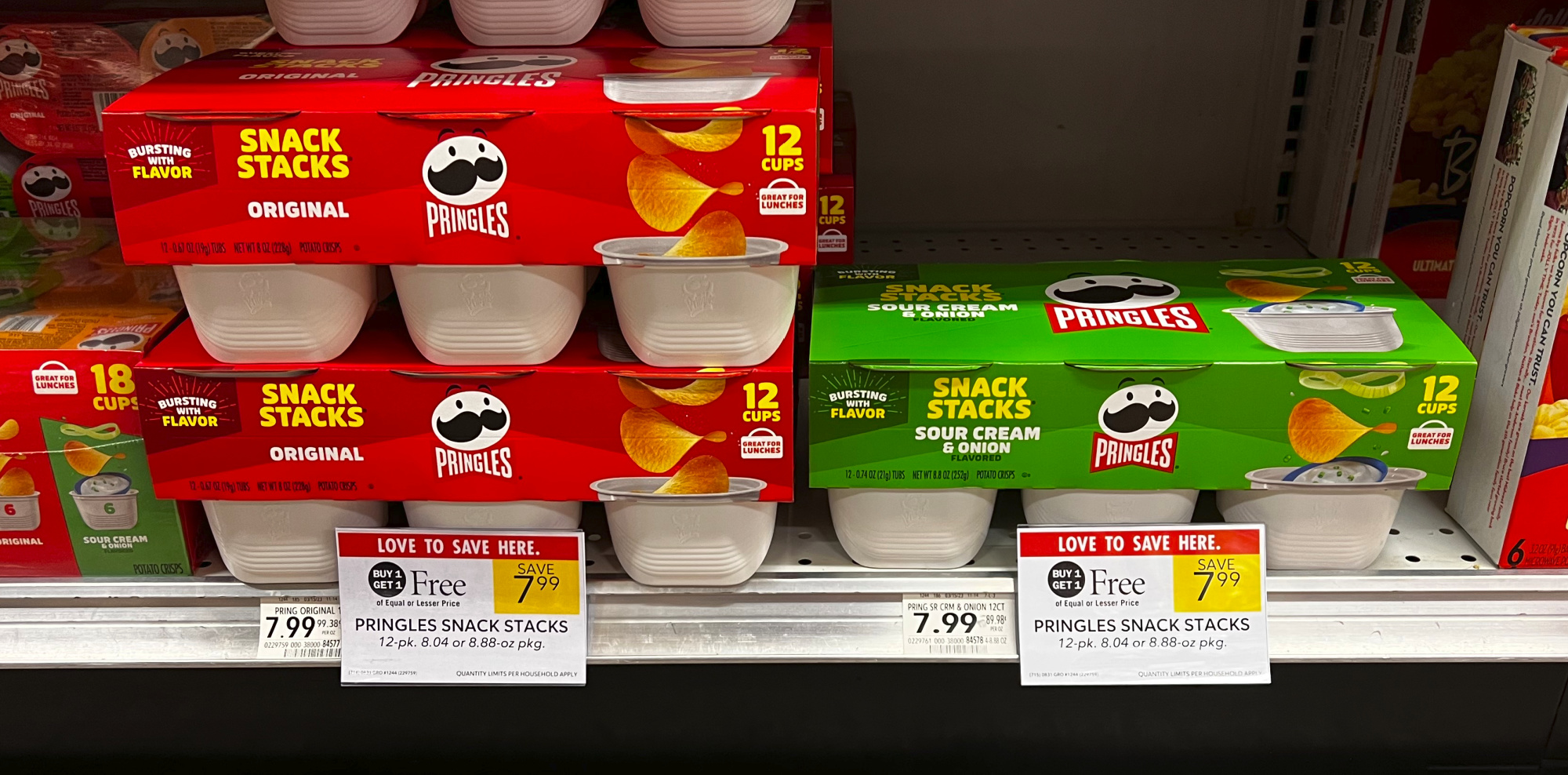 Pringles Snack Stacks, Original, or Sour Cream & Onion, 12-pk, 8.04 or 8.8 oz, BOGO $7.99
