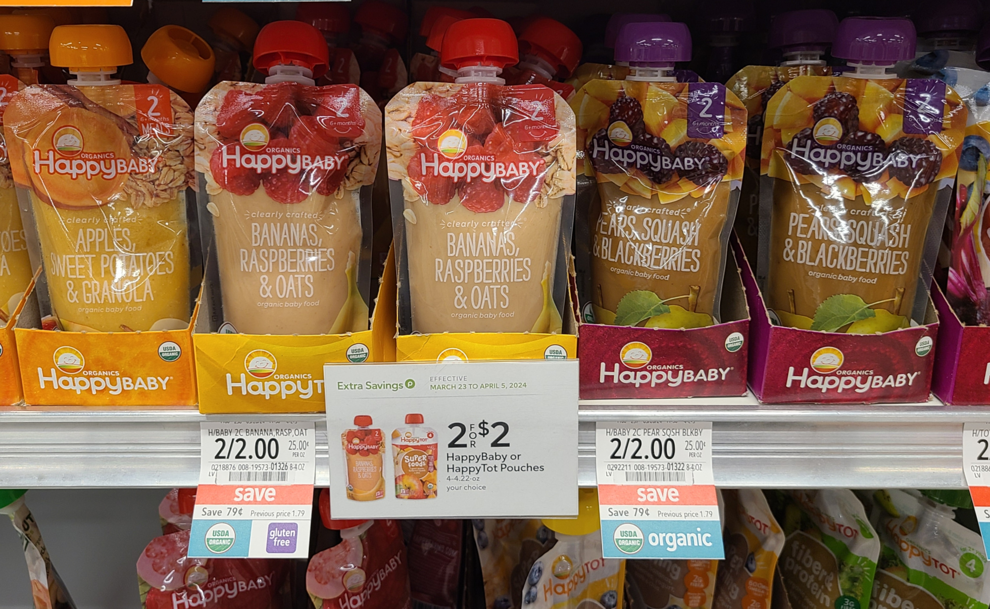 Make your little ones AND your wallet happy with this deal on baby food. After sale and coupon, you can pick up Happy Baby Pouches for only 67¢ each.