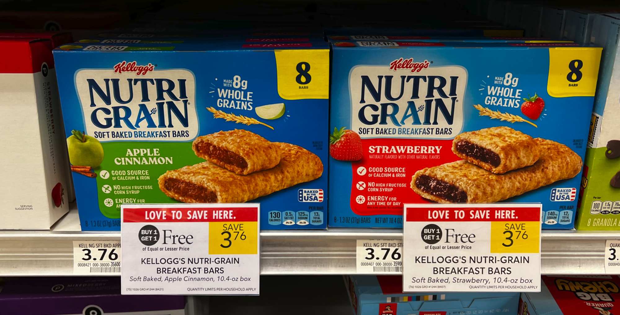 Kellogg’s Nutri-Grain Bars, 10.4 oz, BOGO $3.76