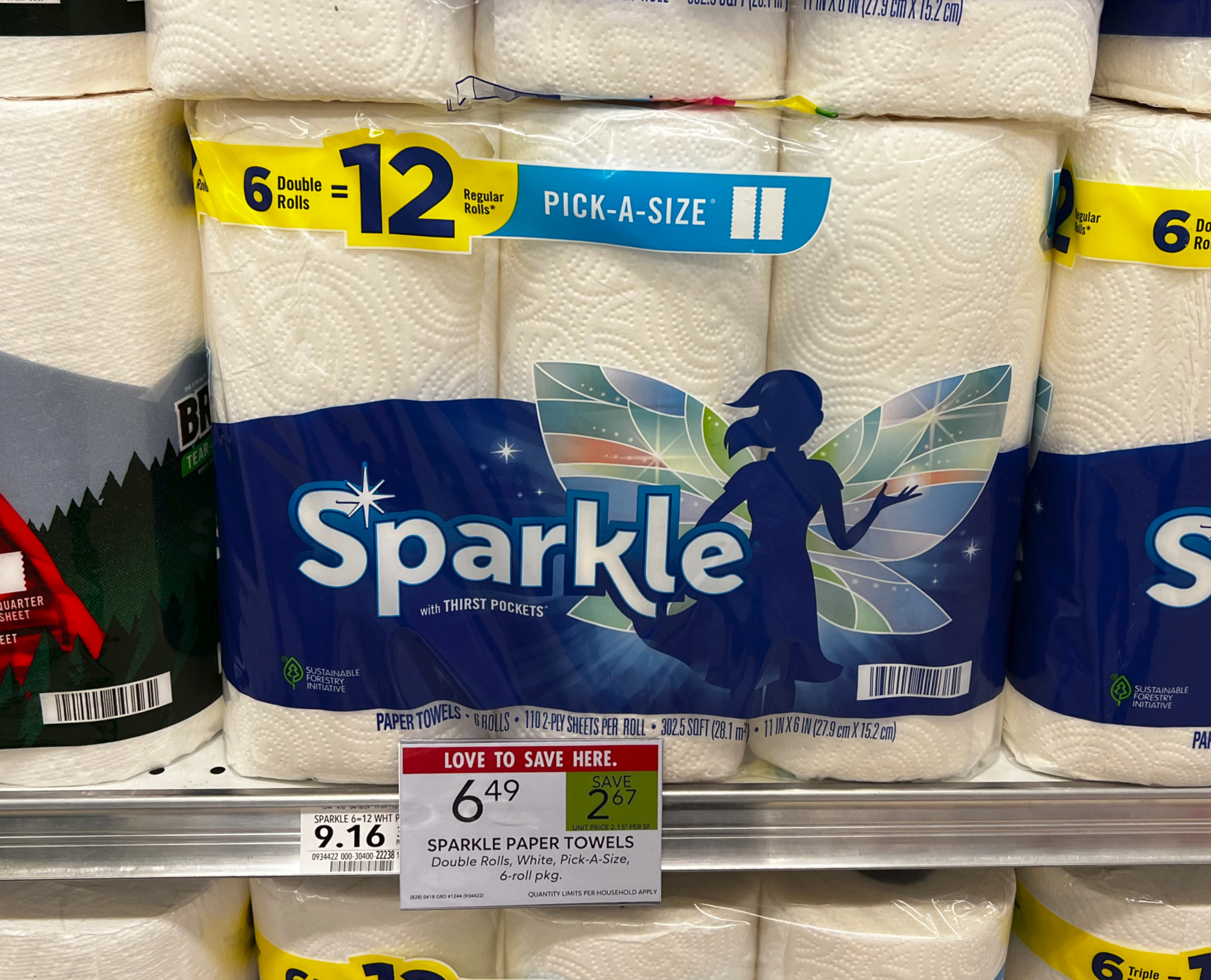 Sparkle Paper Towels, Double Rolls, 6 roll pkg, $6.49 (reg $9.16)
