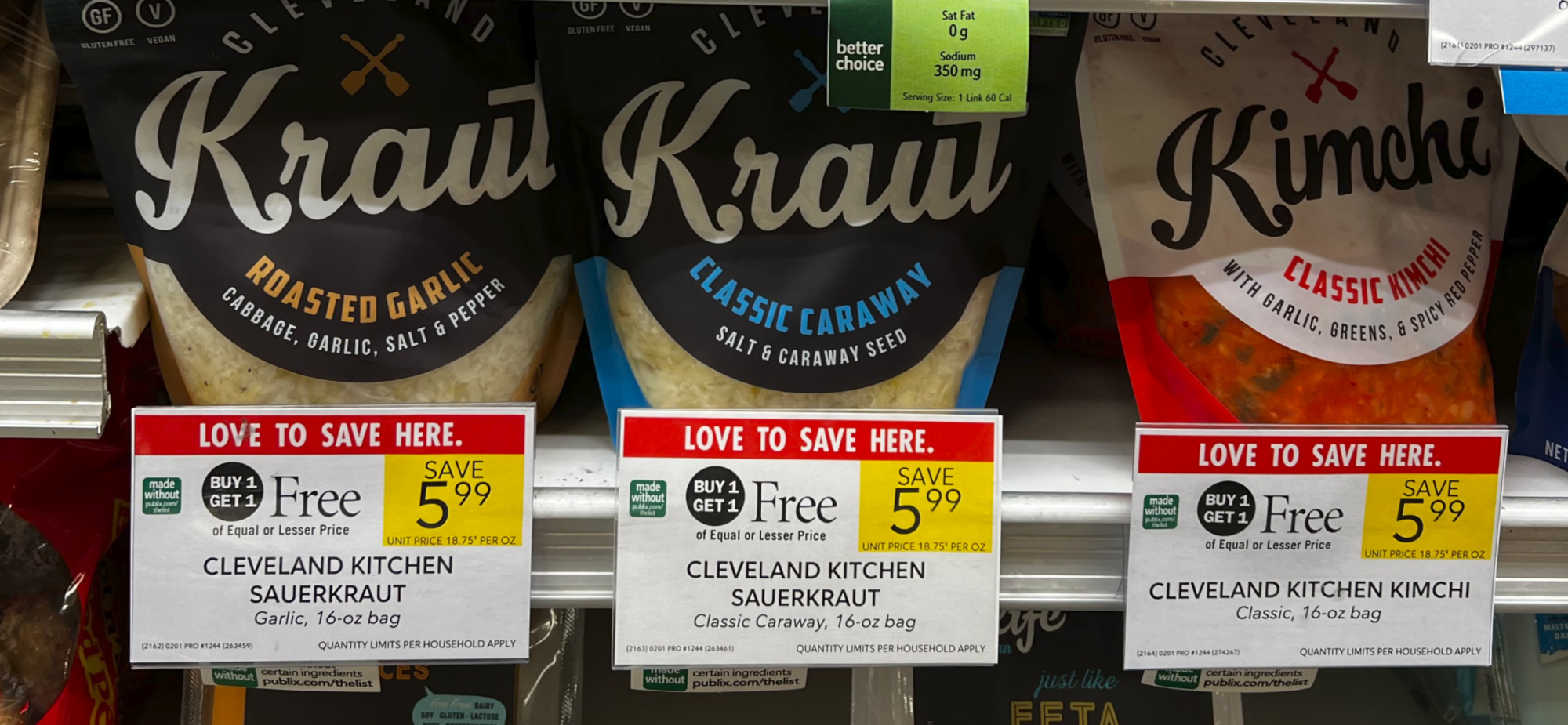 Look for a super deal on Cleveland Sauerkraut and Kimchi available right now at Publix. With the sale and cash back you pay just $1.50 per bag… that’s much better than the regular price of $5.99!