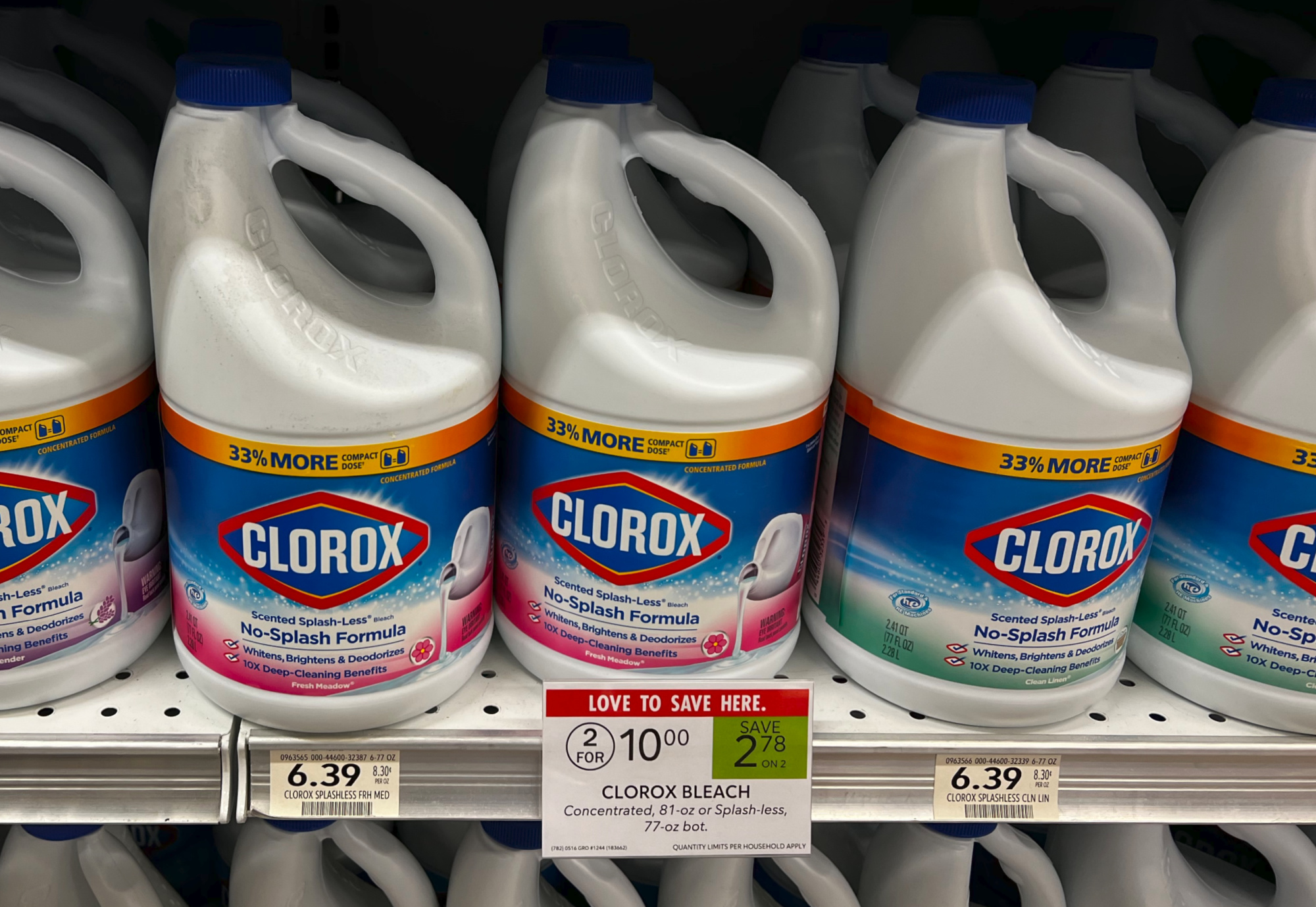 Clorox Bleach, Regular Concentrated, 81 oz, or Splash-less, 77 oz, 2/$10 (reg $6.39)