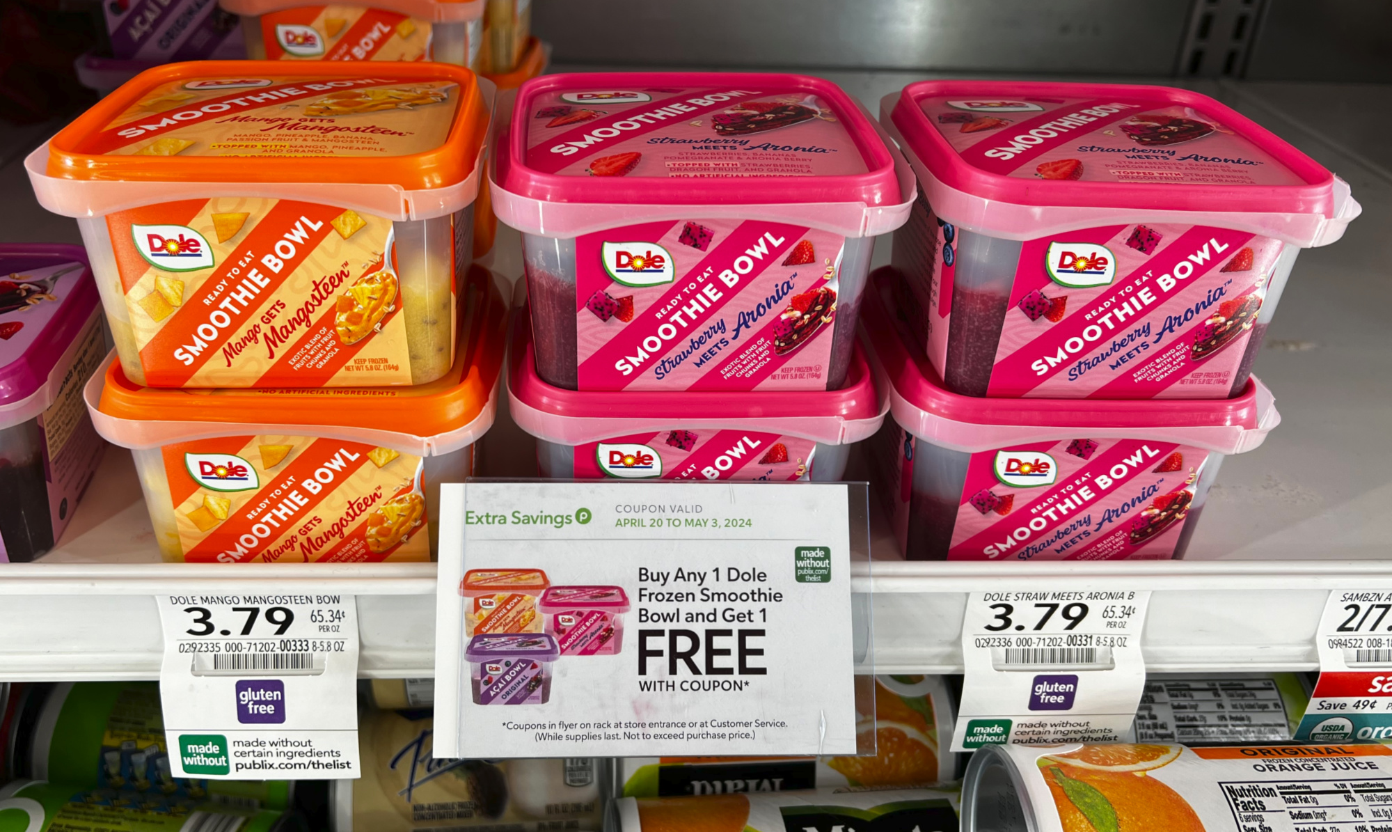-B1G1 Dole Frozen Smoothie Bowl, Extra Savings Flyer In-Ad Publix Coupon (valid 4/20 to 5/3)