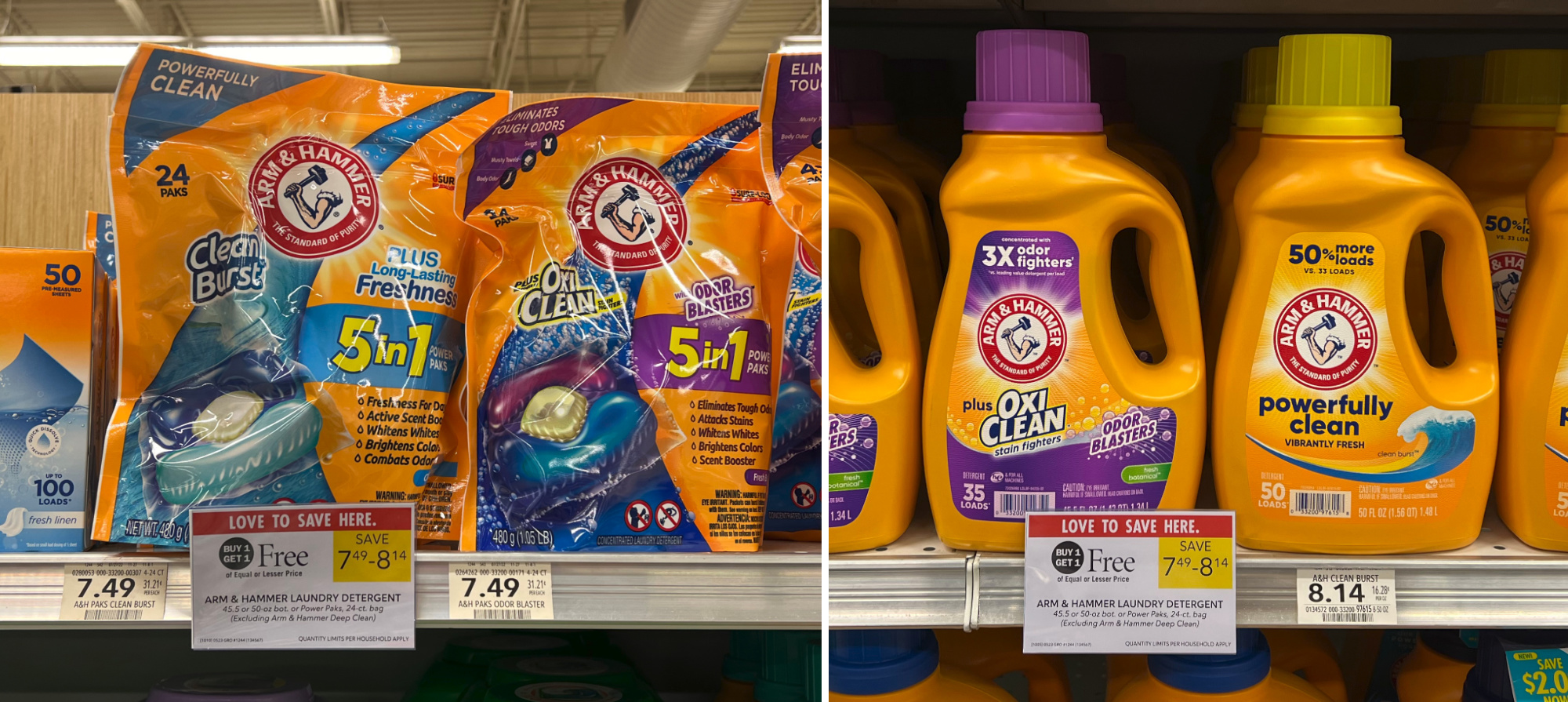 Arm & Hammer Laundry Detergent, 45.5 or 50 oz bot, or 24 ct, (Excluding Arm & Hammer Deep Clean), BOGO $7.49 – $8.14
