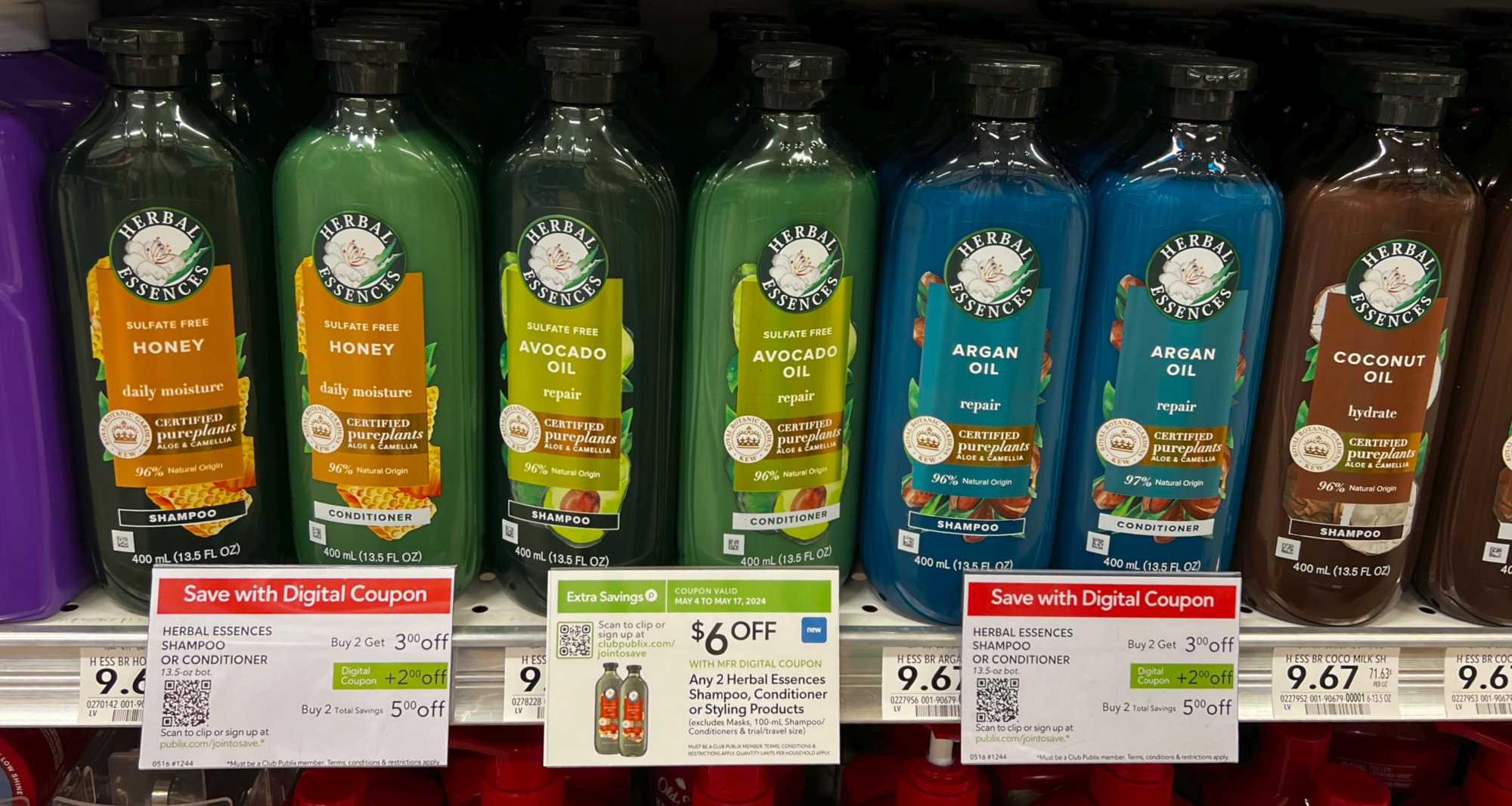 –$6/2 Herbal Essences Pure Plants Blend Shampoo, Conditioner OR Styling Products (excludes Masks, Shampoo and Conditioner Dual Packs, 100 mL Shampoo and Conditioners, and trial/travel size) (Publix Digital Coupon)