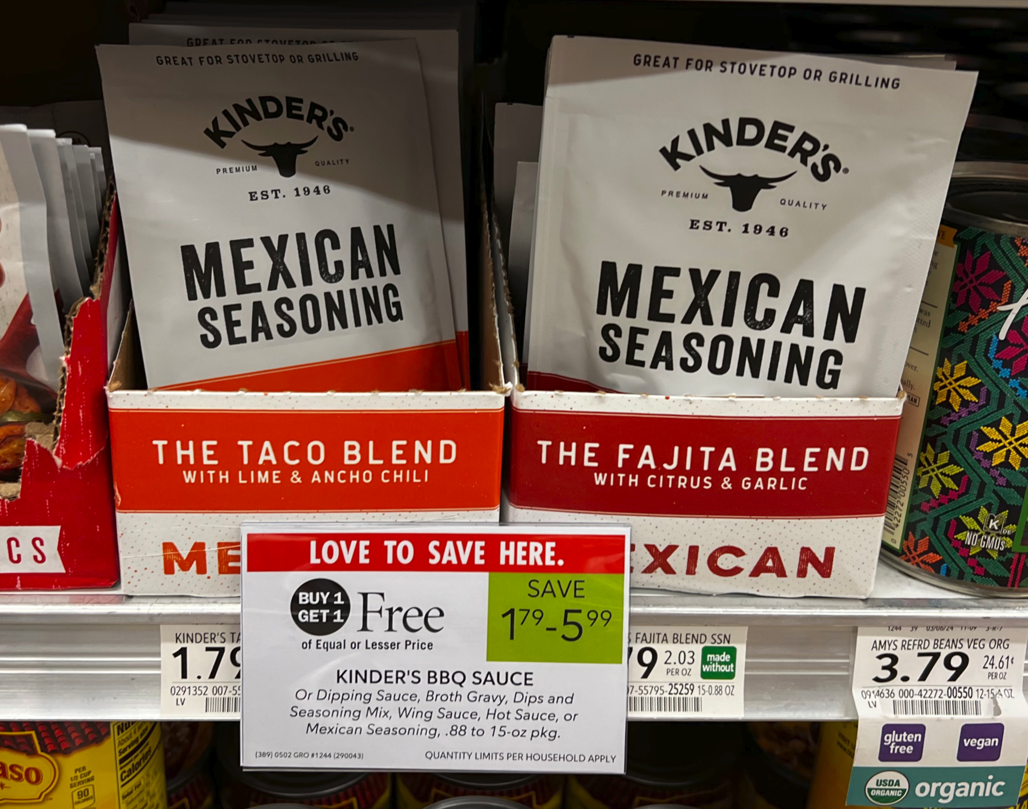 Right now you can grab a super deal on Kinder’s Mexican Seasoning at Publix. After BOGO sale and cash back you pay just 77¢ per packet!