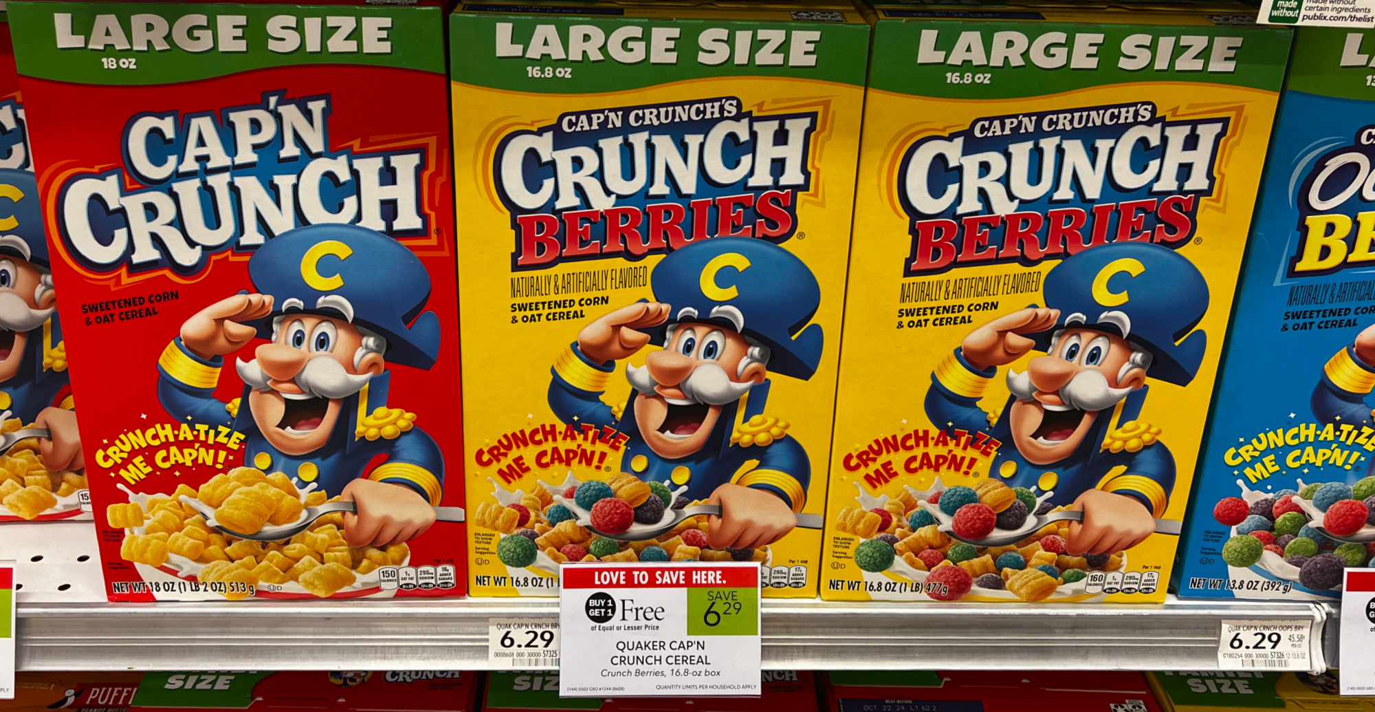 Print the Cap’N Crunch Cereal coupon and get a nice deal at Publix. Pair it up to the BOGO sale to get the large size boxes for just $2.65 the next time you shop!