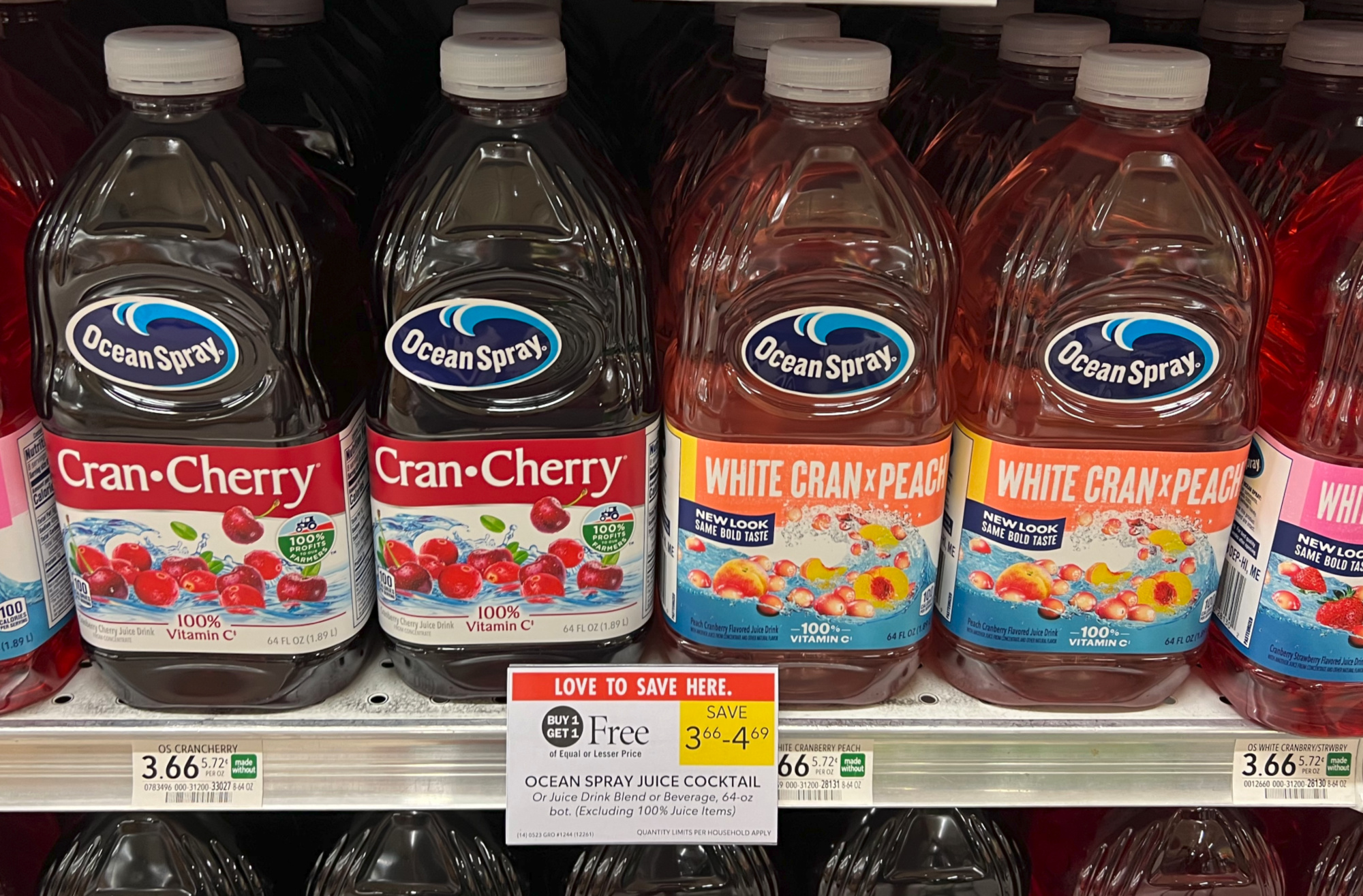 Ocean Spray Juice Cocktail, or Juice Drink, or Blend, or Beverage, 64 oz bot, (Excluding 100% Juice Items), BOGO $3.66 – $4.69