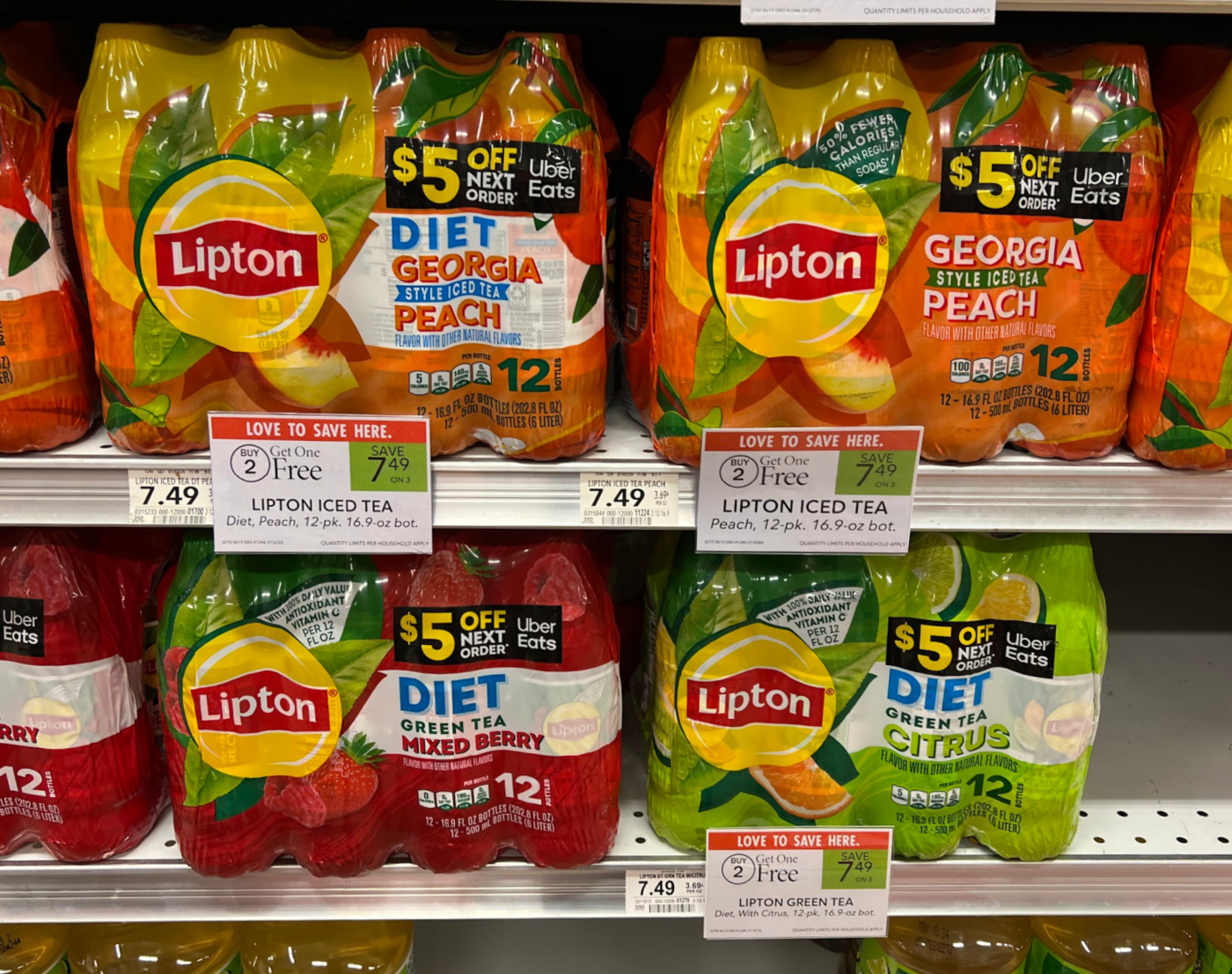 Head over to Publix and pick up a nice deal on the big 12-packs of Lipton Tea. Combine the sale and coupon to pay as little as $4.66 per pack when you buy three.