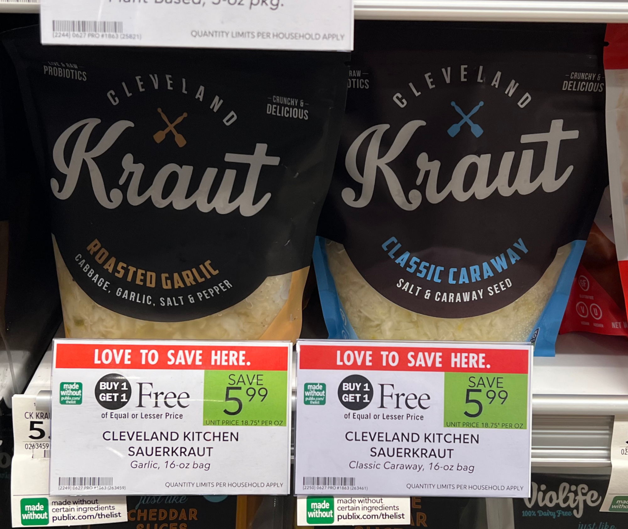 Look for a nice deal on Cleveland Kitchen Sauerkraut right now at Publix. With the sale and cash back offer you pay just $1.50 per bag… that’s much better than the regular price of $5.99!
