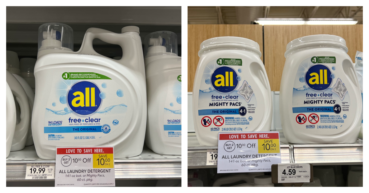 All Laundry Detergent, 141 oz, or 60 ct, $10 Off wyb 2, $19.99