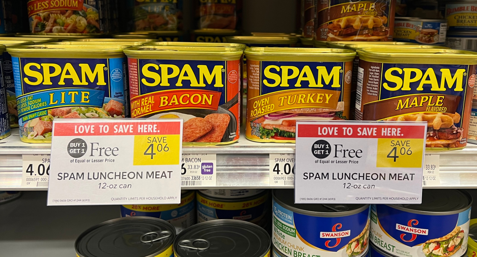 Head over to Publix for a deal on Spam. Right now they are BOGO with a cash back offer to pair up. Grab the Maple Flavored Spam for just $1.03 the next time you shop.