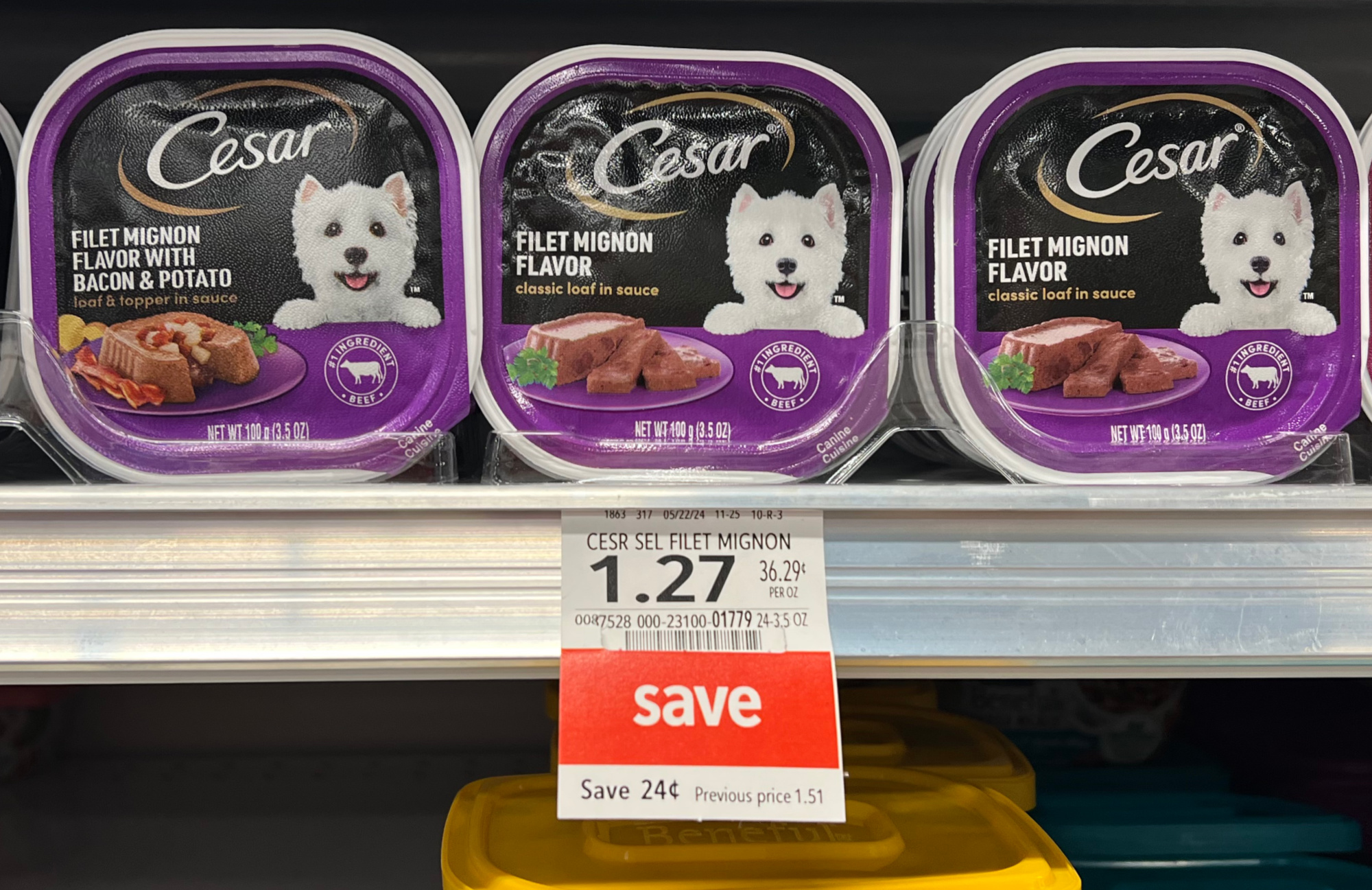 Cesar Dog Food, 3.5 oz cup, $1.27 (reg $1.51)