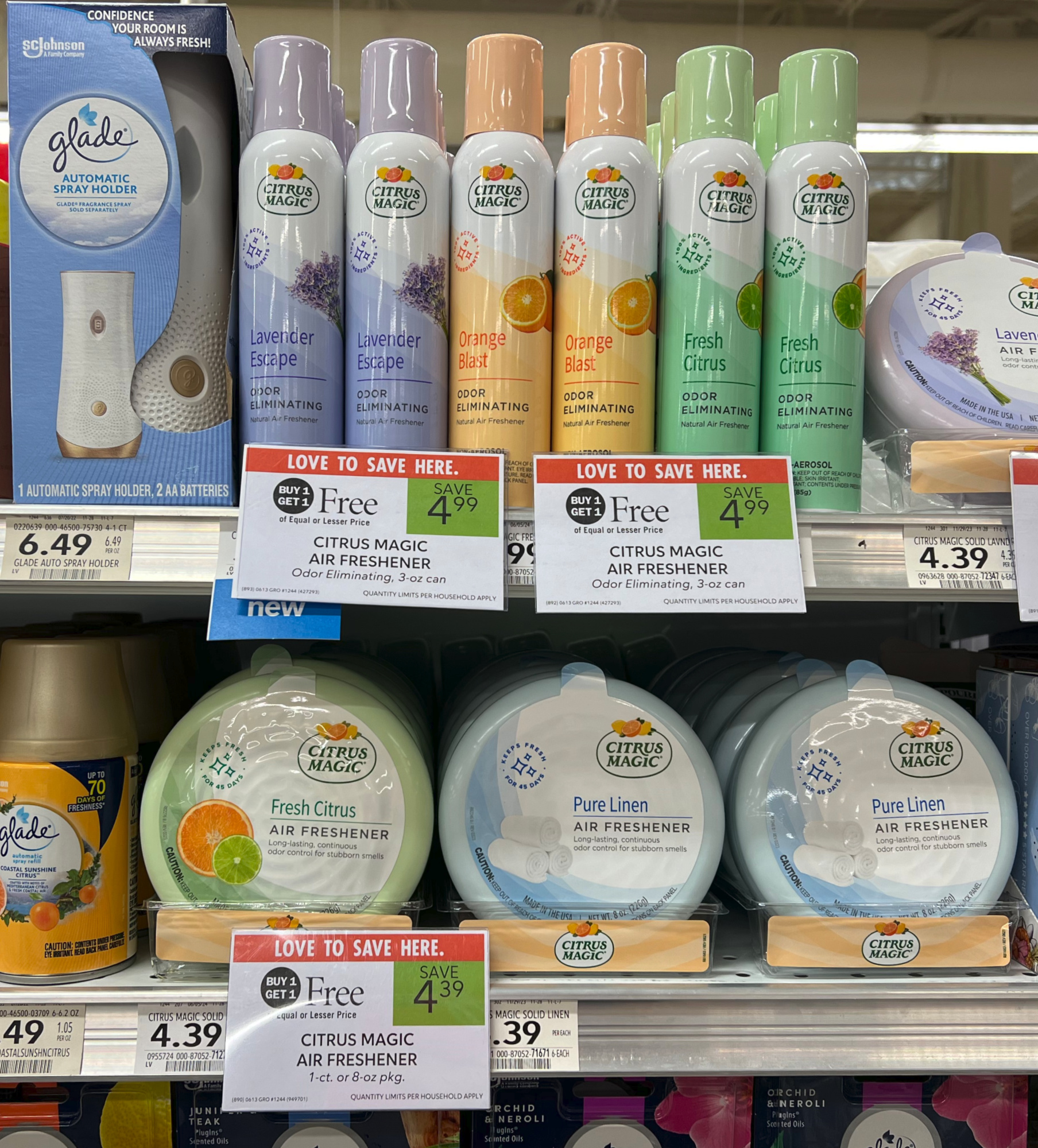 Head over to Publix for a deal on Citrus Magic products. Combine the BOGO sale and cash back offer to pay as little as $1.70 per item.
