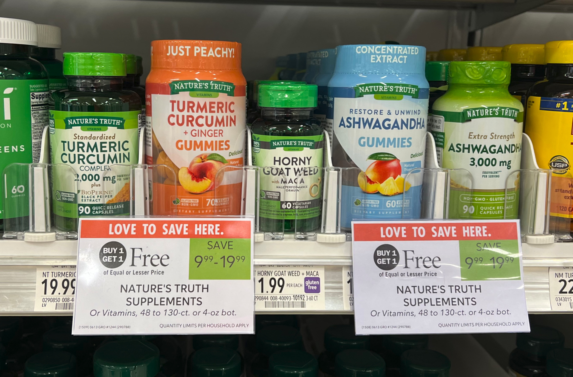 Nature’s Truth Supplements, or Vitamins, 48 to 130 ct, or 4 oz, BOGO $9.99 – $19.99