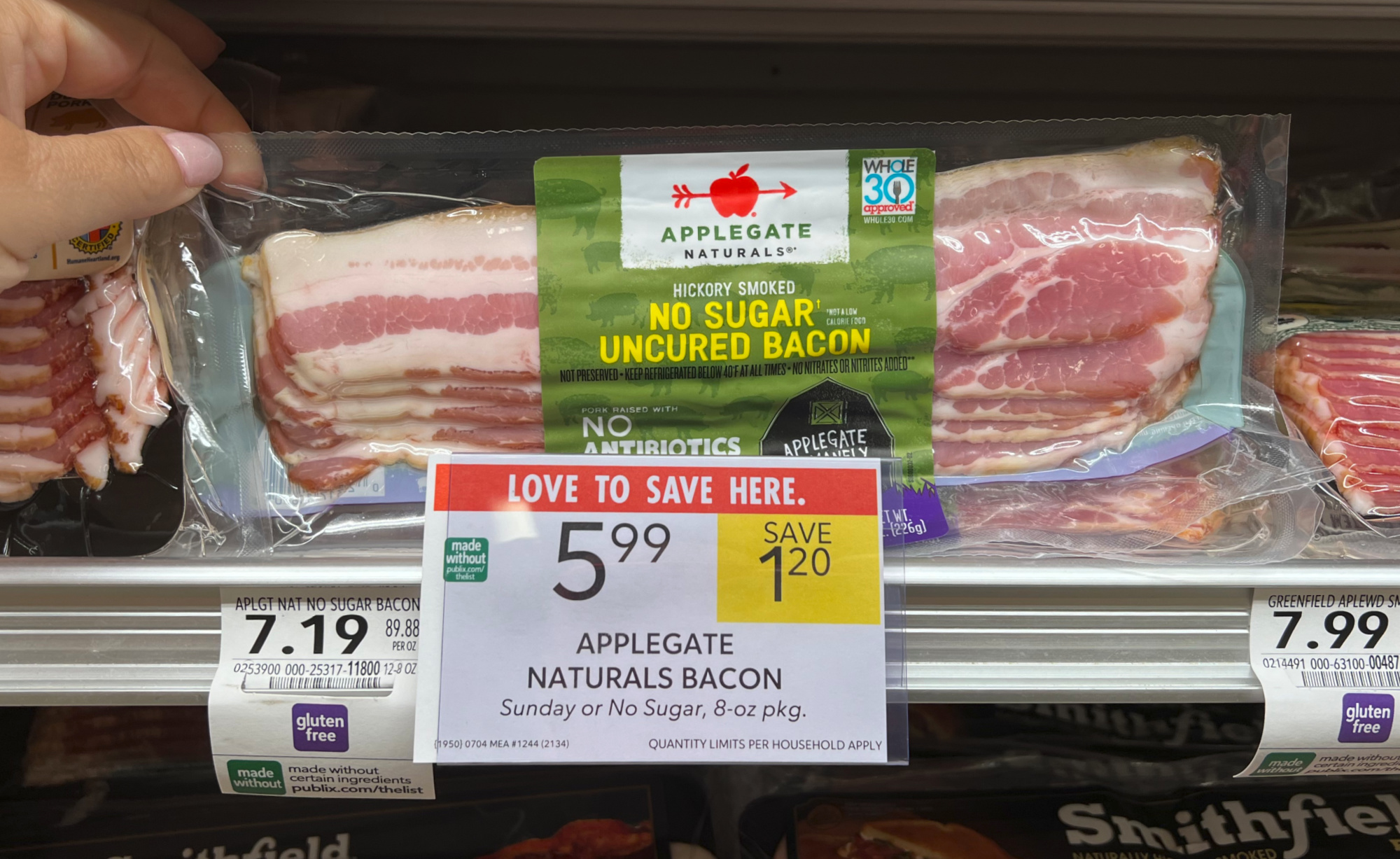 Applegate Naturals Bacon, Sunday or No Sugar, 8 oz, $5.99 (reg $7.19)