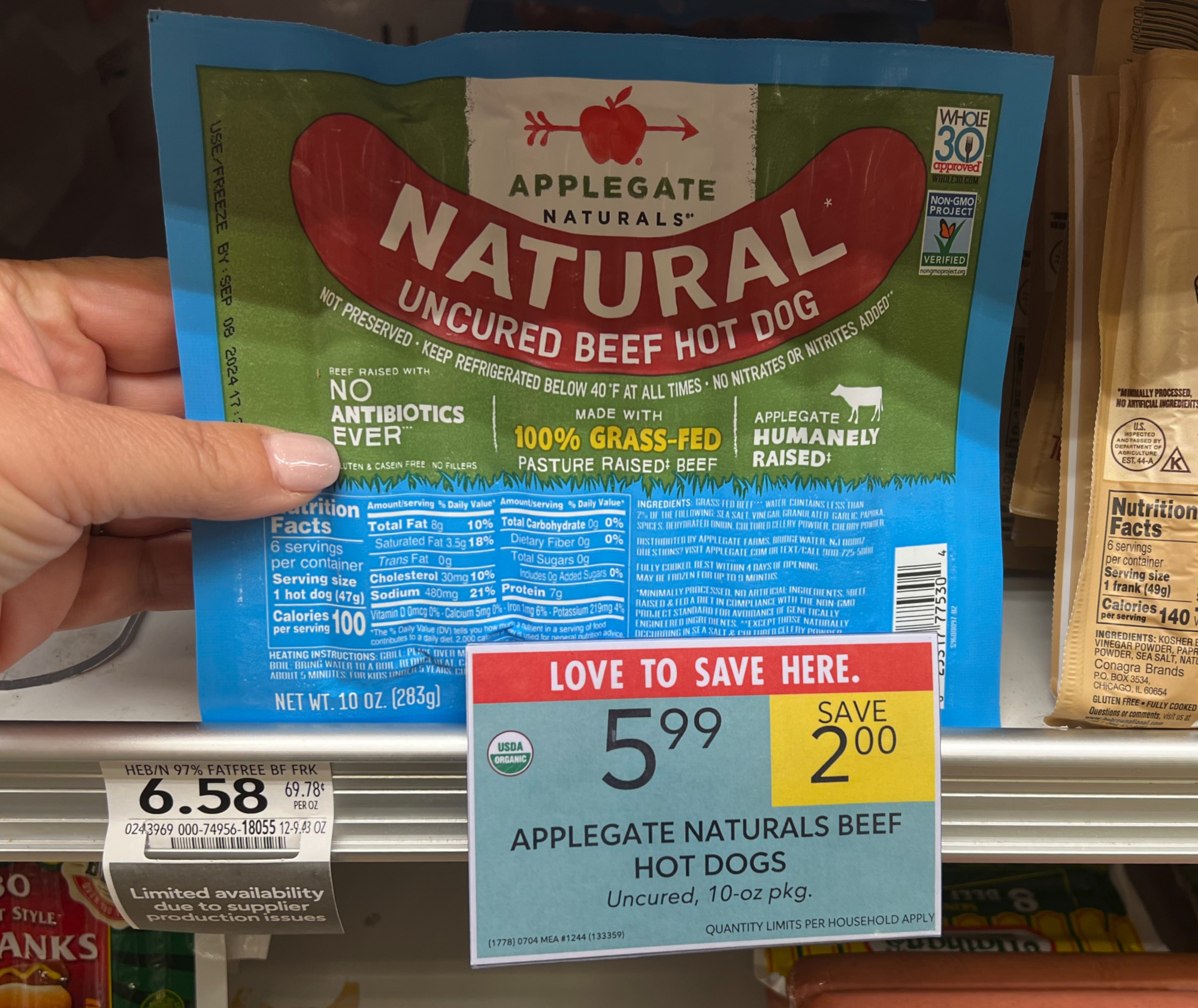 –$1/2 Applegate or Applegate Organics Hot Dogs (Ibotta Deposit) – Must buy 2 [Cannot be combined]