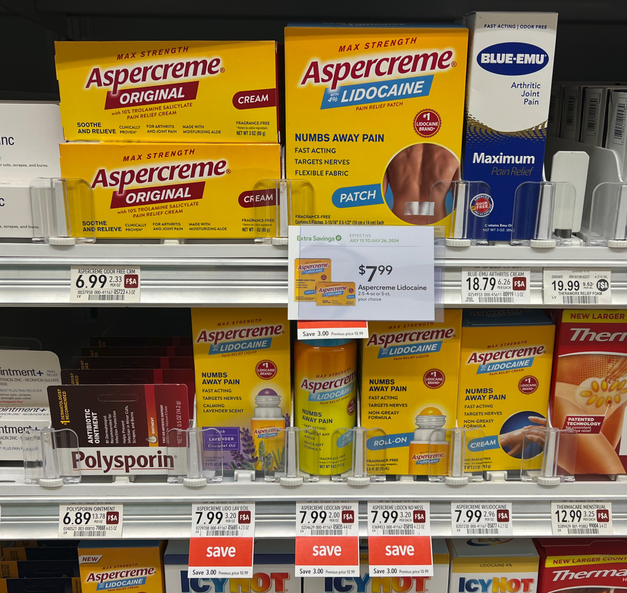 Aspercreme Lidocaine, 2.5 to 4 oz, or 5 ct, $7.99 (reg $10.99)