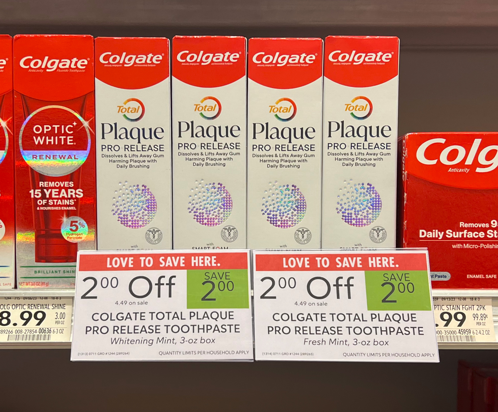 Right now you can grab a super deal on Colgate Total Plaque Pro Release Toothpaste at Publix. Combine the sale and digital coupon to pick up a tube for as little as $2.49… gotta love that price!