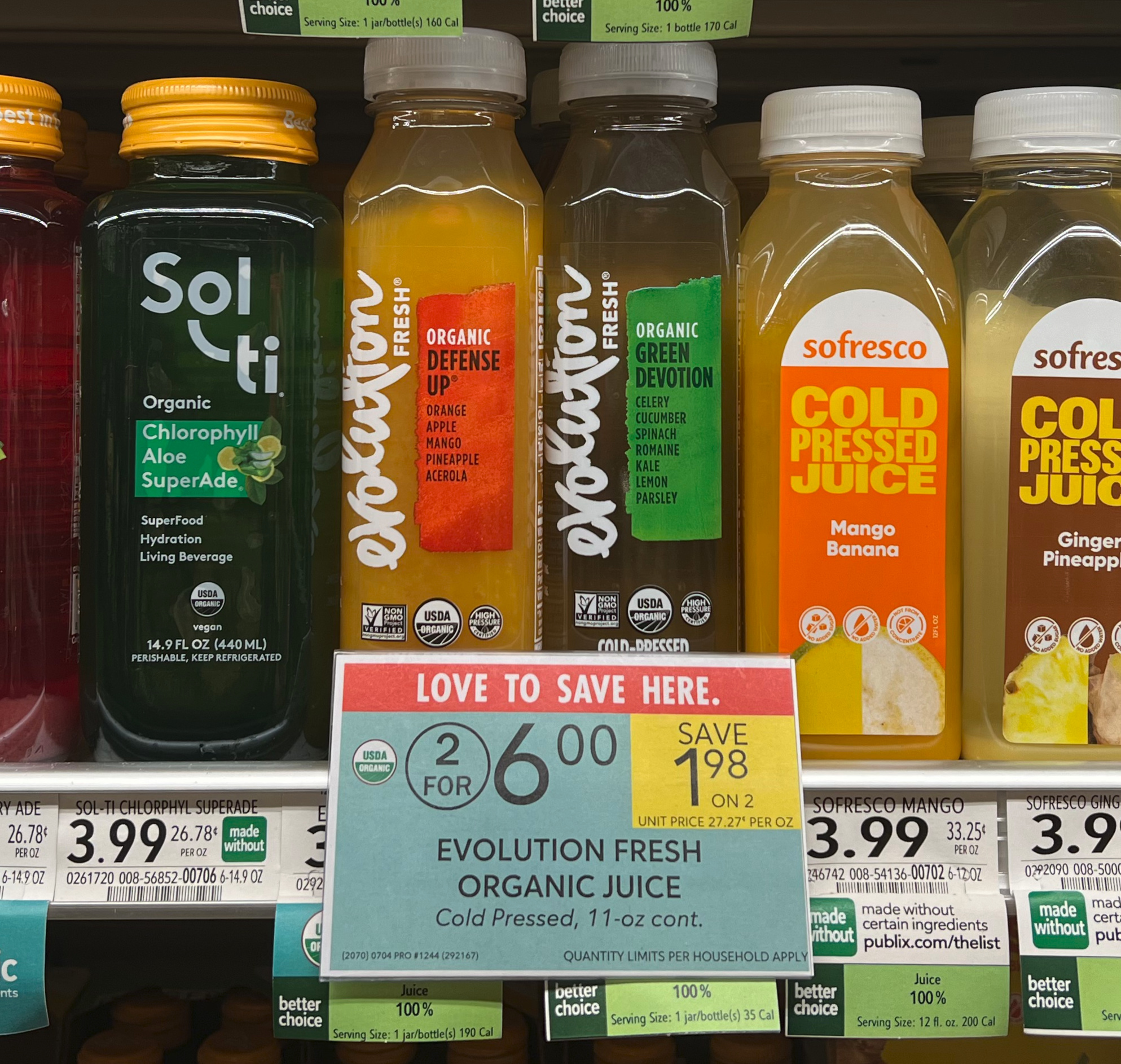 Head over to Publix to pick up a deal on Evolution Fresh Organic Juice. Combine the sale and cash back offer to pay as little as $2 per bottle the next time you shop!