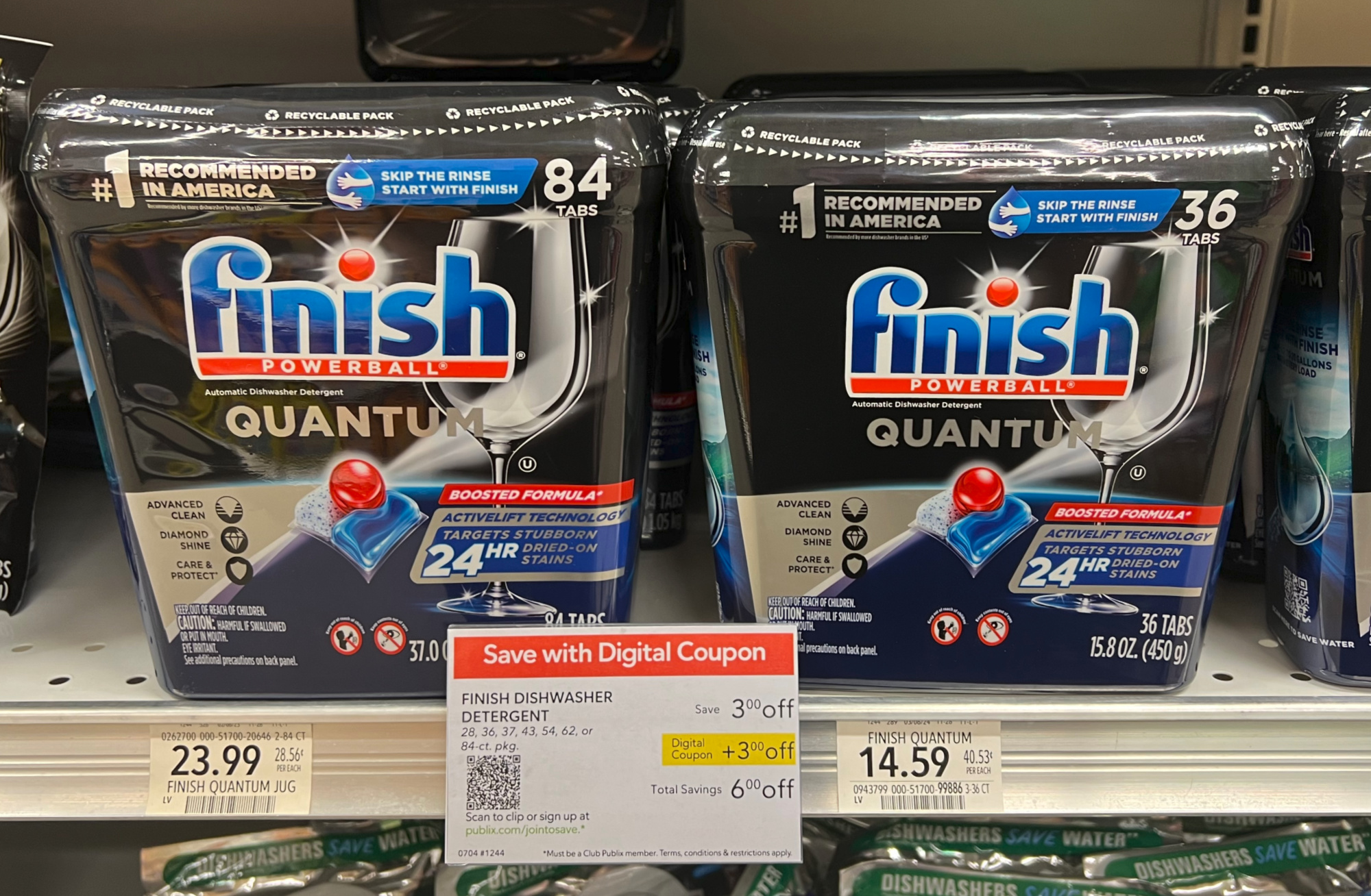 –$3/1 Finish Dishwasher Detergent, 28, 36, 37, 43, 54, 62, or 84 ct (Publix Digital Coupon)