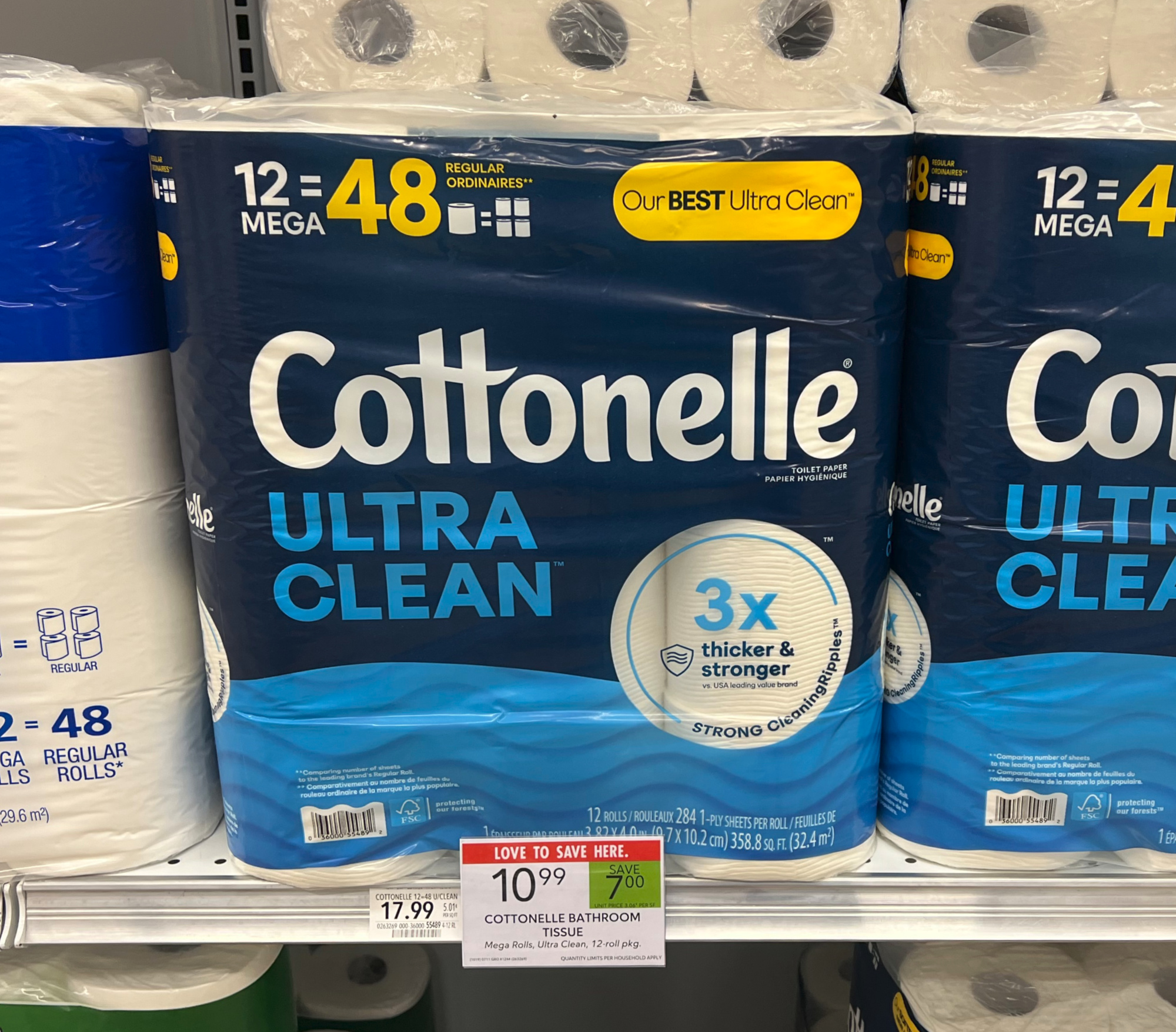 Cottonelle Bathroom Tissue, Mega Rolls, 12-roll, $10.99 (reg $17.99)