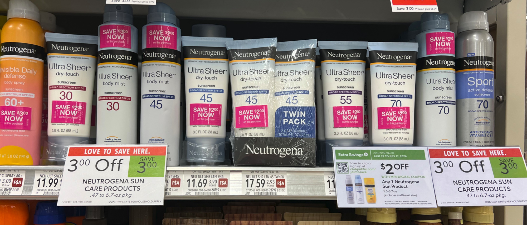 –$2/1 NEUTROGENA Sun Product (excludes travel & trial sizes) (Publix Digital Coupon)
